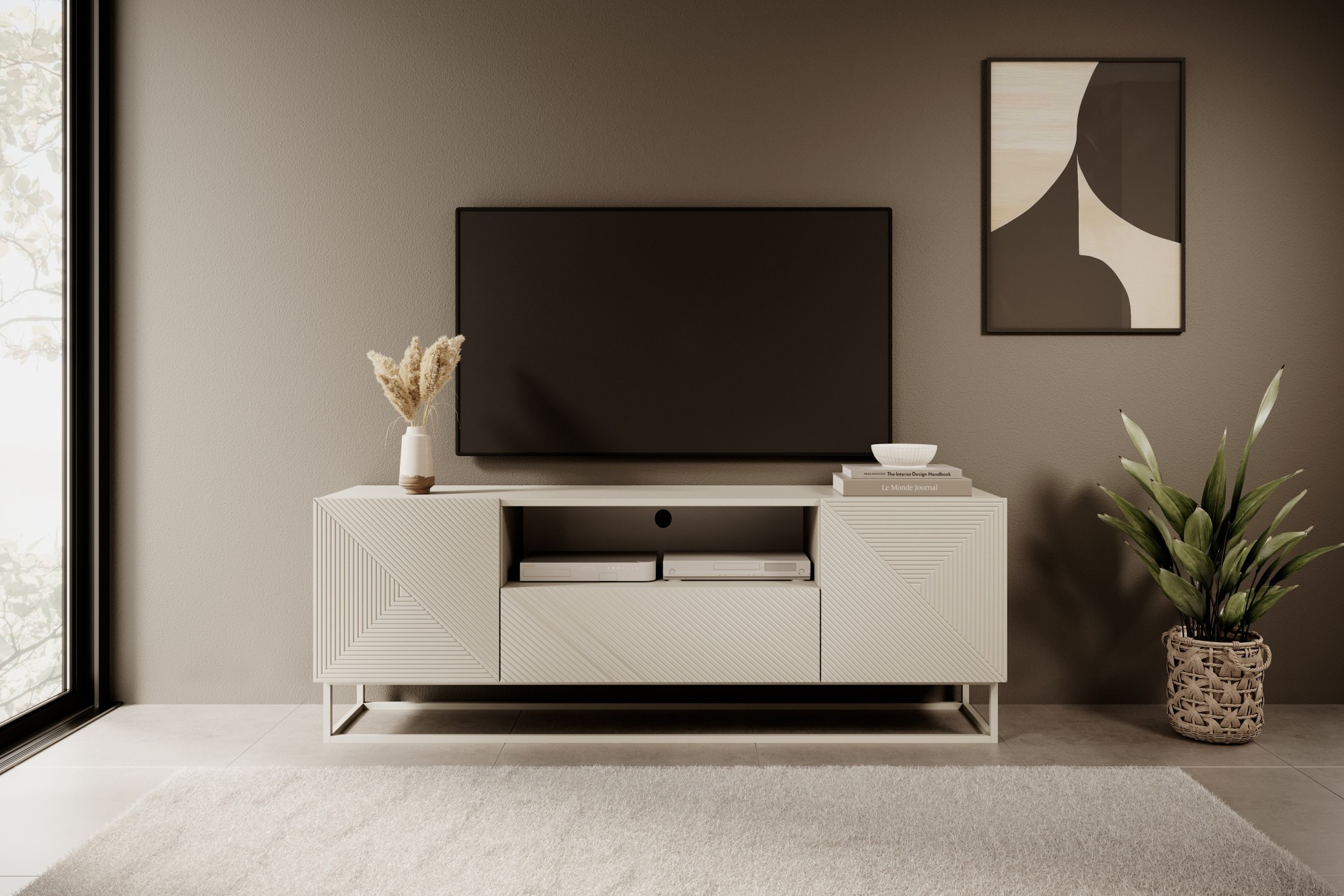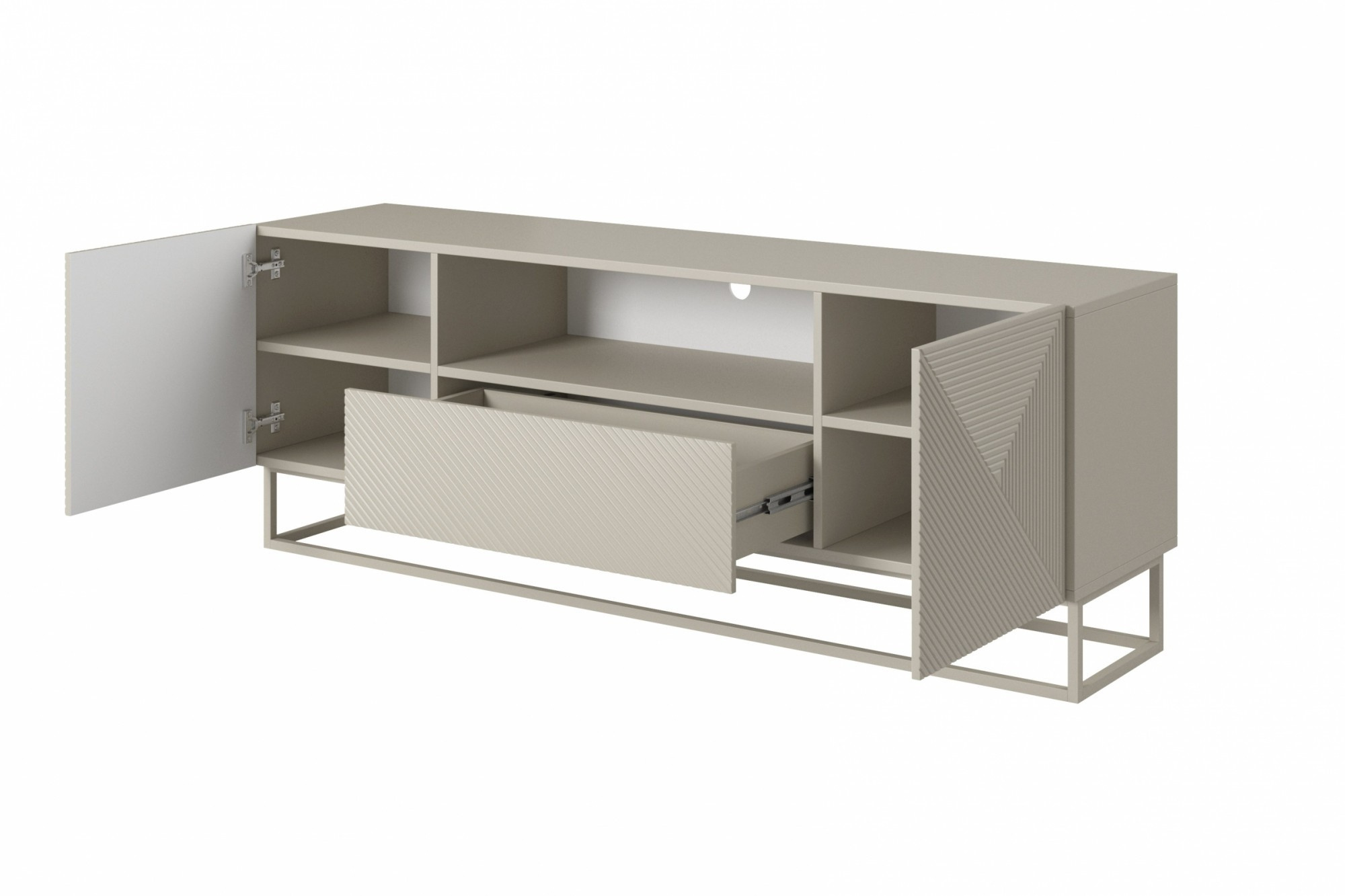 RTV skříňka Asha se zásuvkou a kovovým, kašmírovým rámem 167 cm - kašmír, Šířka: 167, Výška: 60, Hloubka: 40, Výška nožiček: 16, Hloubka desky: , Montáž: