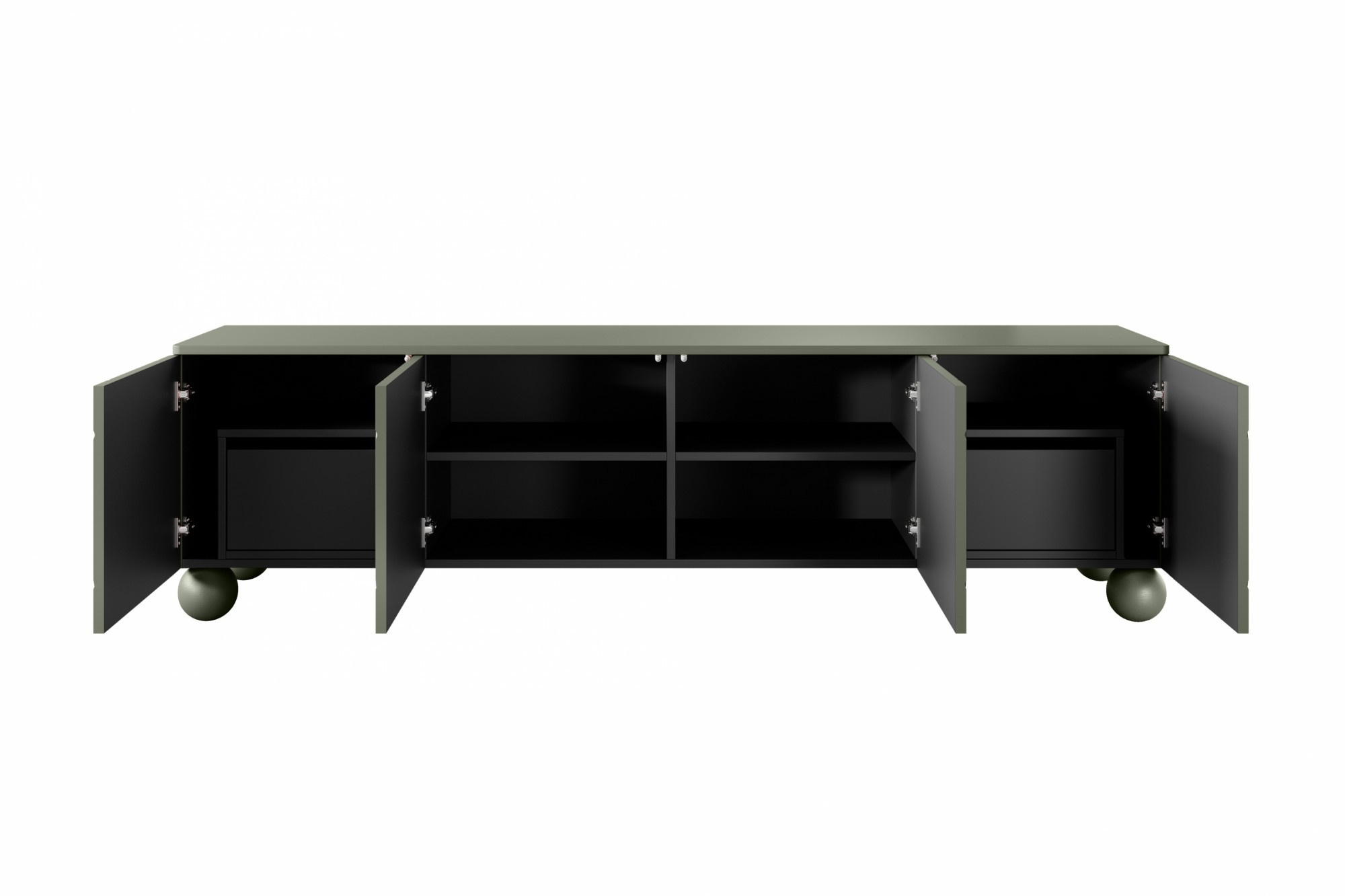 Skříňka RTV čtyřdveřová se dvěma skrytými zásuvkami Sonatia II 200 cm - olivová, Šířka: 200, Výška: 57, Hloubka: 45, Výška nožek: 12, Montáž: