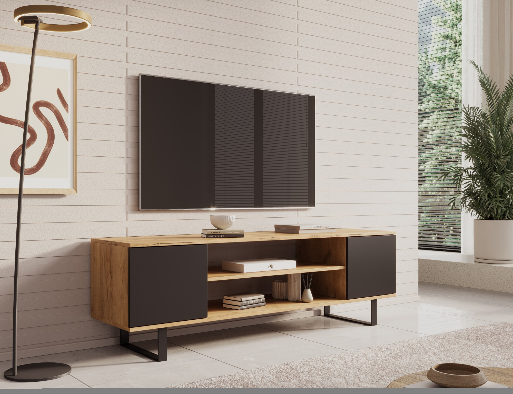 TV skříňka Lofter 155 cm Dub Craft+Černá