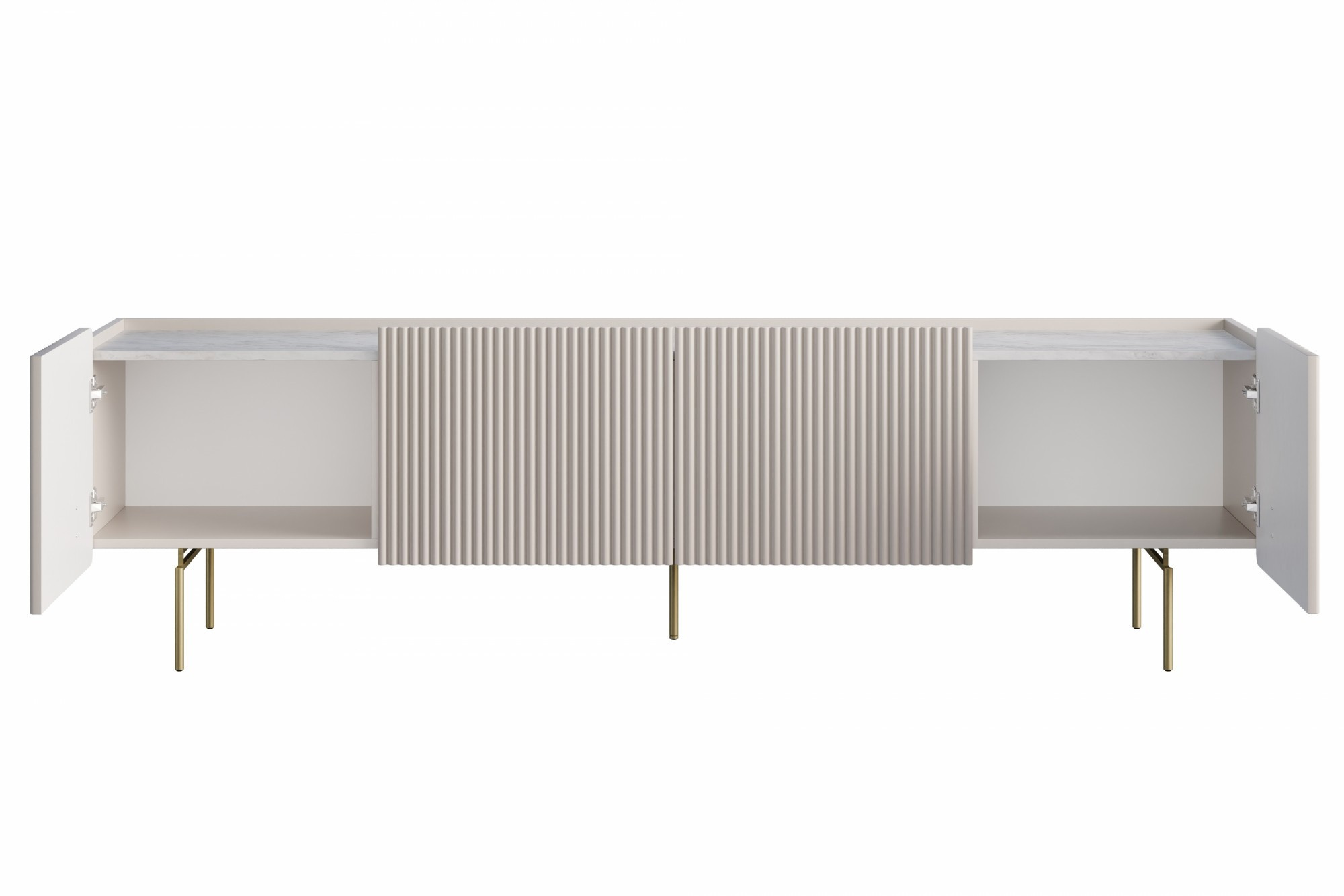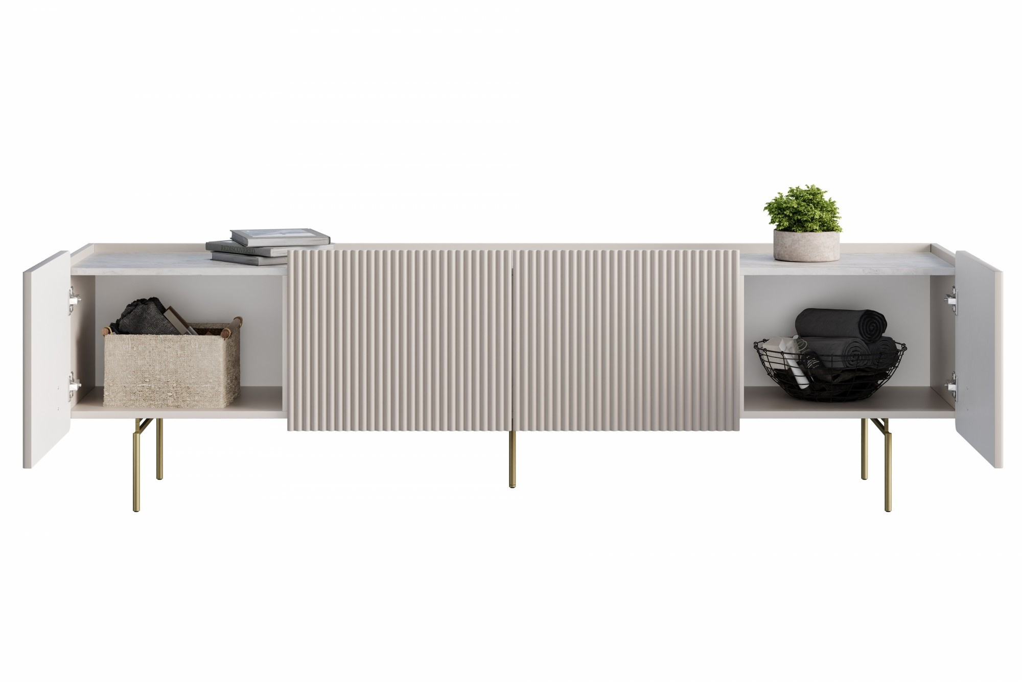 Skříňka RTV Malmi 200 cm - kašmír / crema bianca / zlaté nožky, Šířka: 200, Výška: 57, Hloubka: 42, Výška nožek: 17, Hloubka desky: , Montáž: