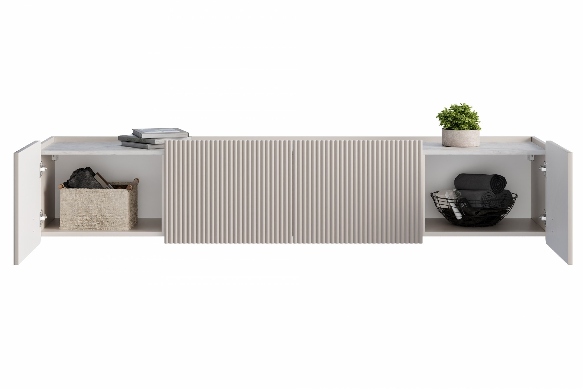 RTV skříňka Malmi 200 cm závěsná - kašmír / crema bianca / zlatá, Šířka: 200, Výška: 40, Hloubka: 42, Výška nožek: , Hloubka desky: , Montáž: