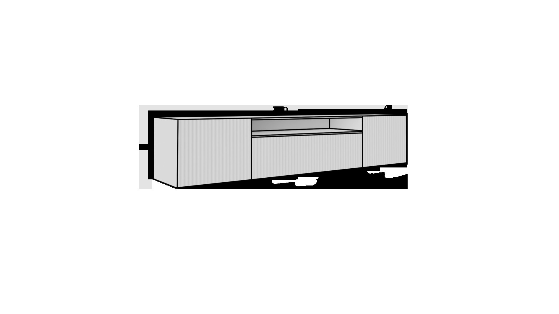 RTV Noemi je moderní, elegantní a funkční televizní skříňka, ideální pro použití v moderních interiérech. Jeho unikátní vlastností je drážkované provedení, které dodává nábytku charakter a texturu. Skříňka byla navržena tak, aby obsahovala vhodné přihrádky a police pro uložení různorodého elektronického vybavení, včetně televize, set-top boxu, herní konzole a mnoha dalších.