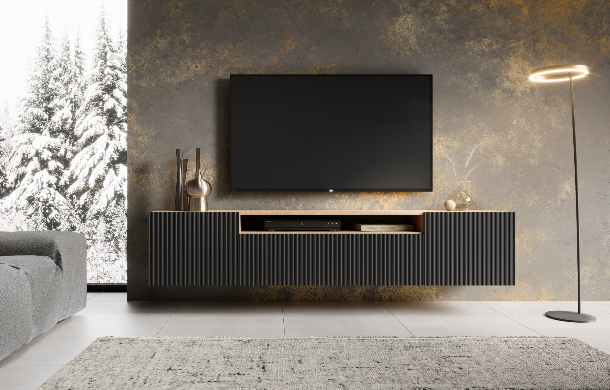 Závěsná TV skříňka NOEMI Černá+Artisan
