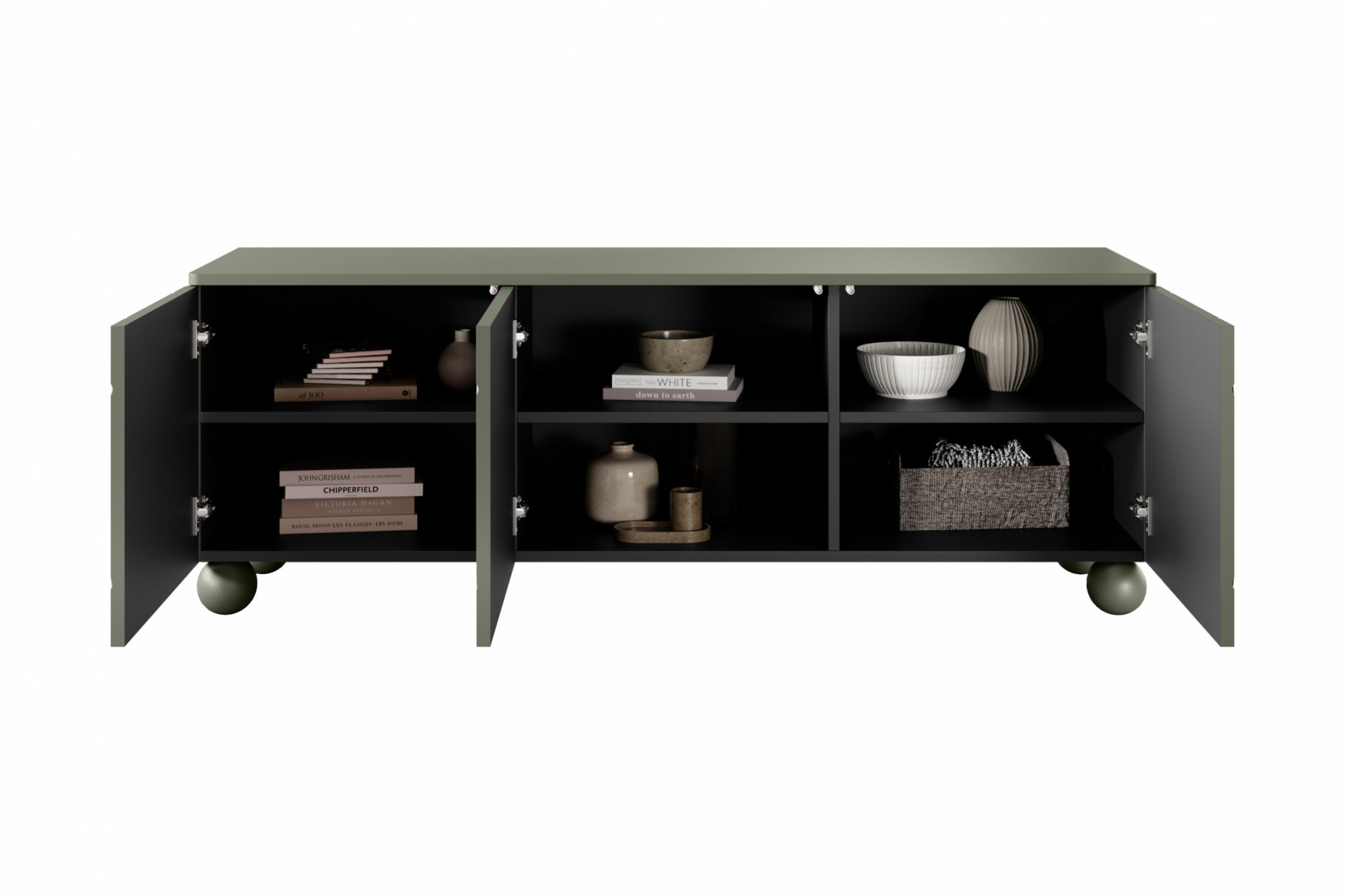 Skříňka RTV třídveřová Sonatia II na kulatých nohách 150 cm - olivová, Šířka: 150, Výška: 57, Hloubka: 45, Výška nožek: 12, Montáž: