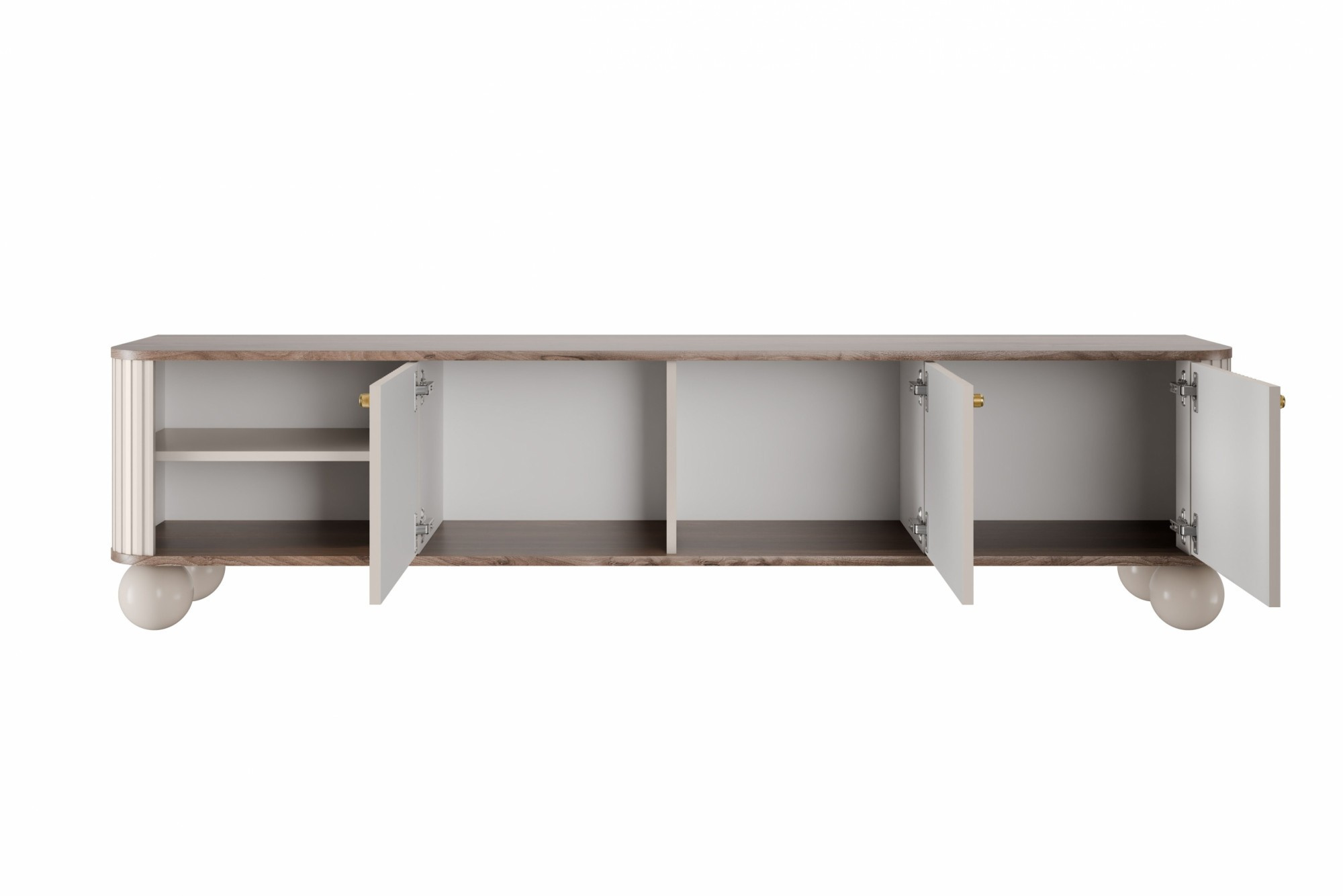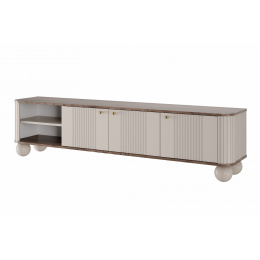 TV skříňka Vesper 3D 187 cm - kašmír / ořech / zlaté úchyty / nohy koule, Šířka: 187, Výška: 48, Hloubka: 38, Výška nožek: 12, Hloubka desky: , Montáž: