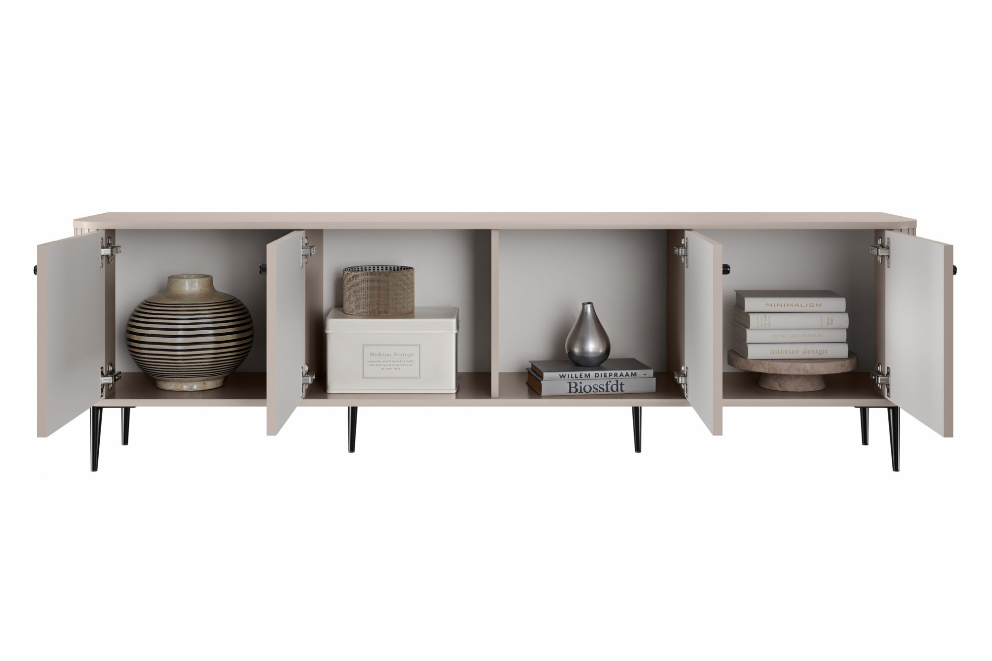 Skříňka RTV Vesper 4D 187 cm - kašmír / černé nohy, Šířka: 187, Výška: 51, Hloubka: 38, Výška nožek: 15, Hloubka desky: , Montáž: