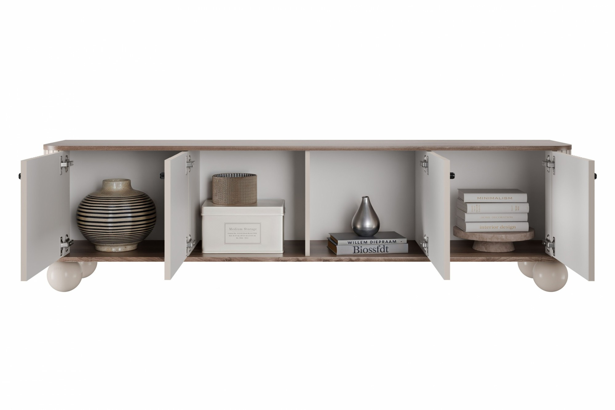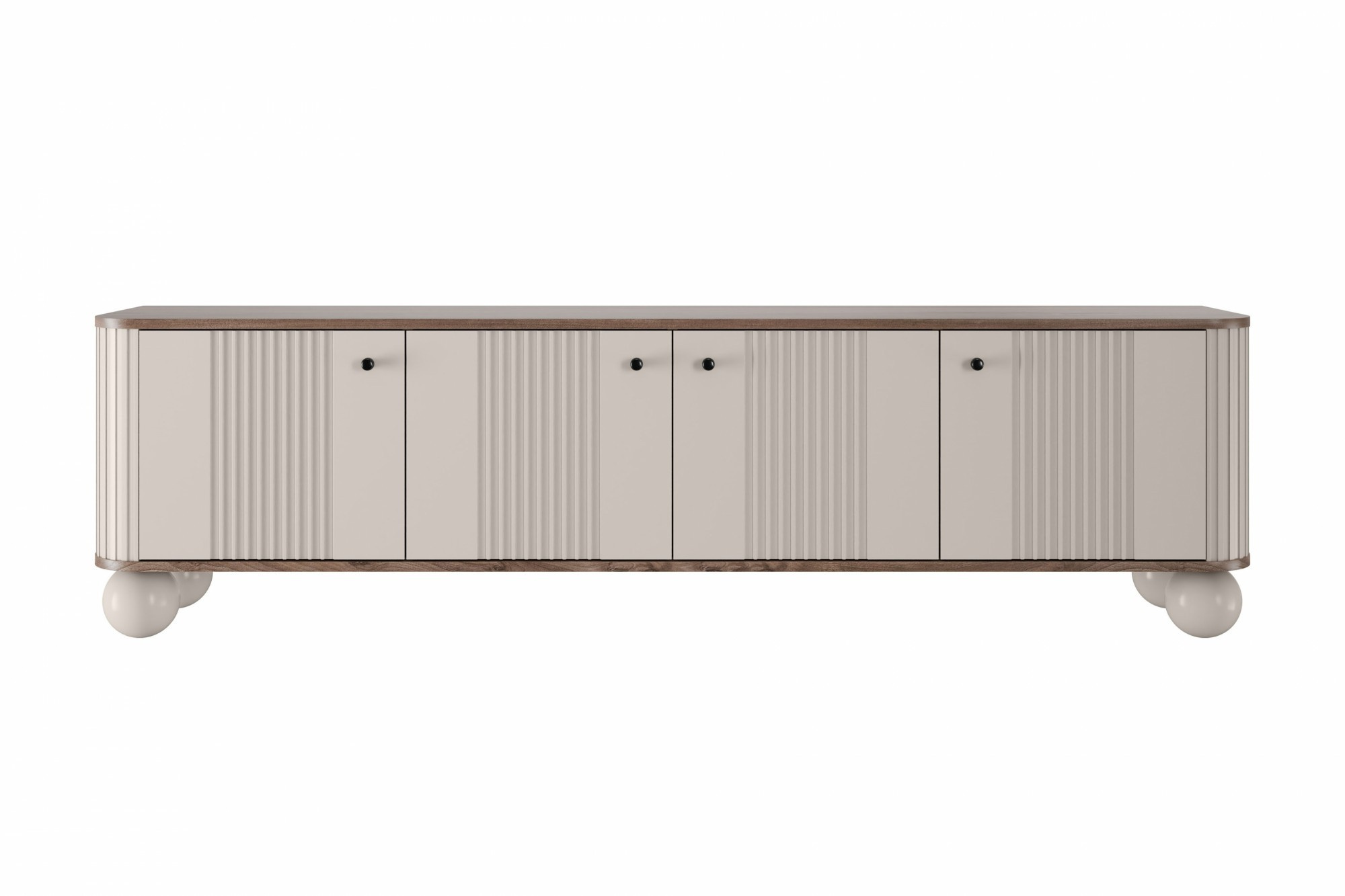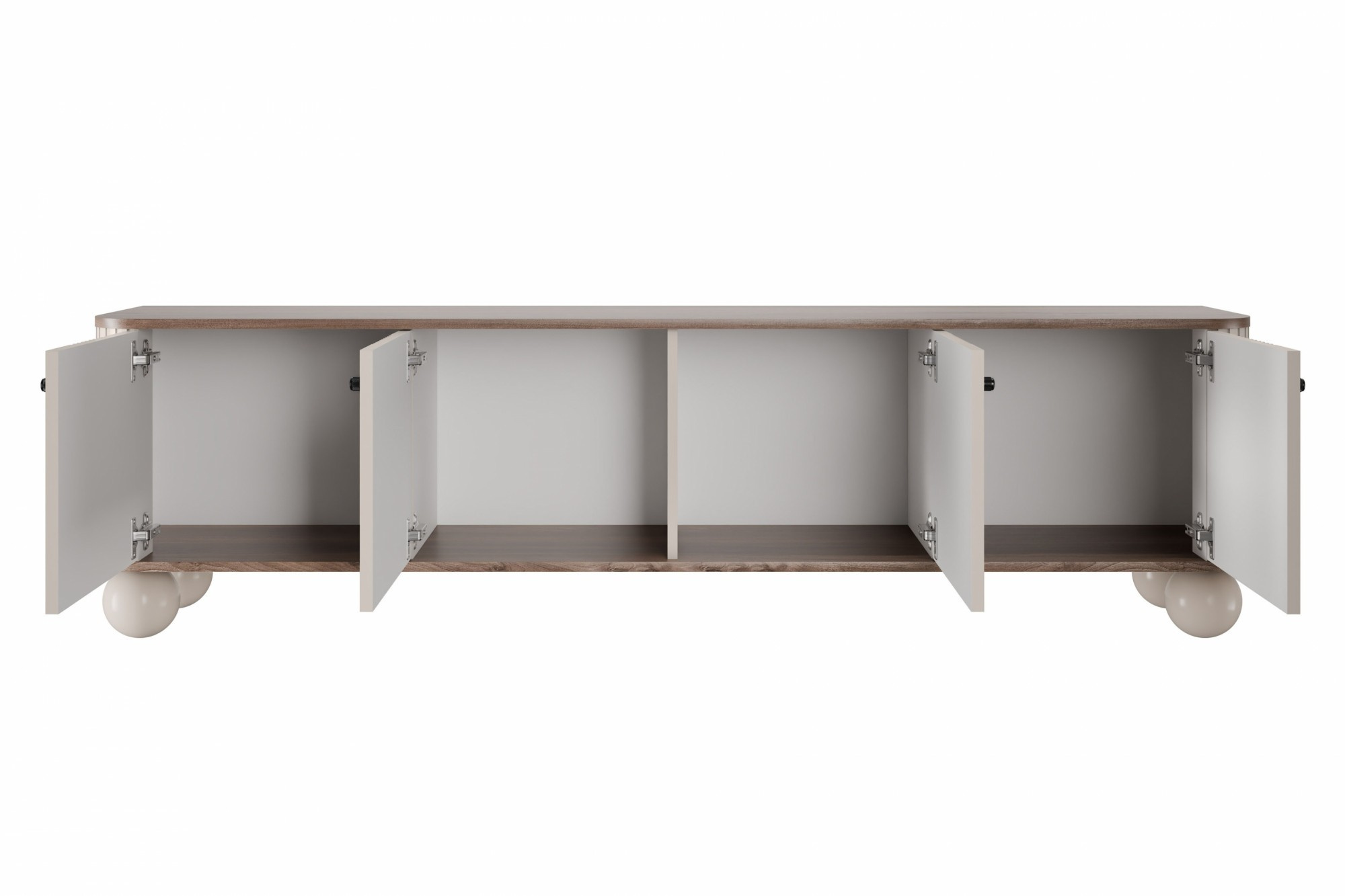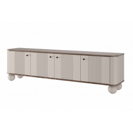 Skříňka RTV Vesper 4D 187 cm - kašmír / ořech / černé úchyty / nohy koule, Šířka: 187, Výška: 48, Hloubka: 38, Výška nožek: 12, Hloubka desky: , Montáž: