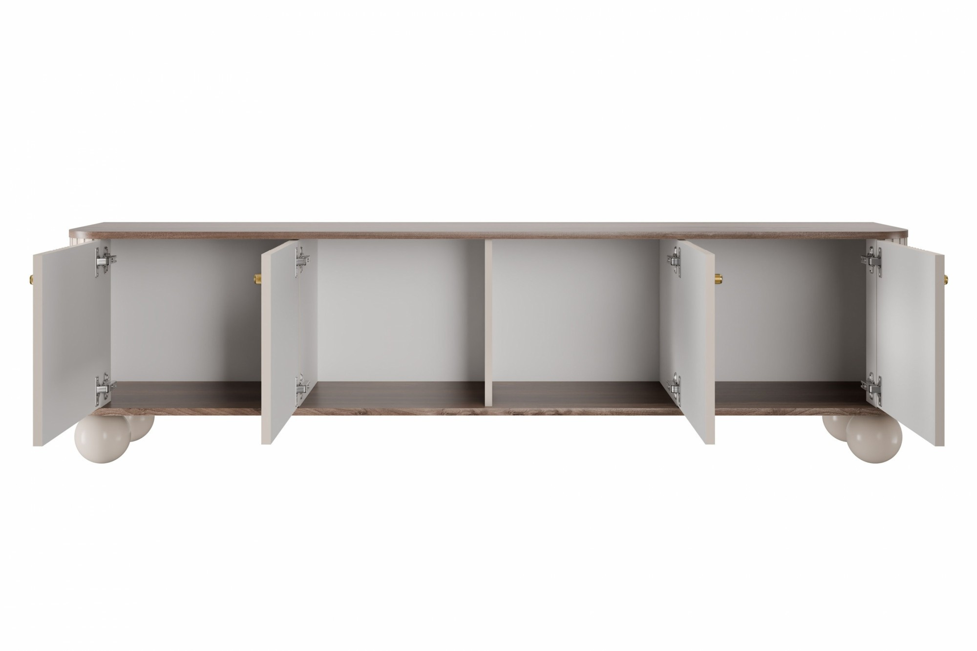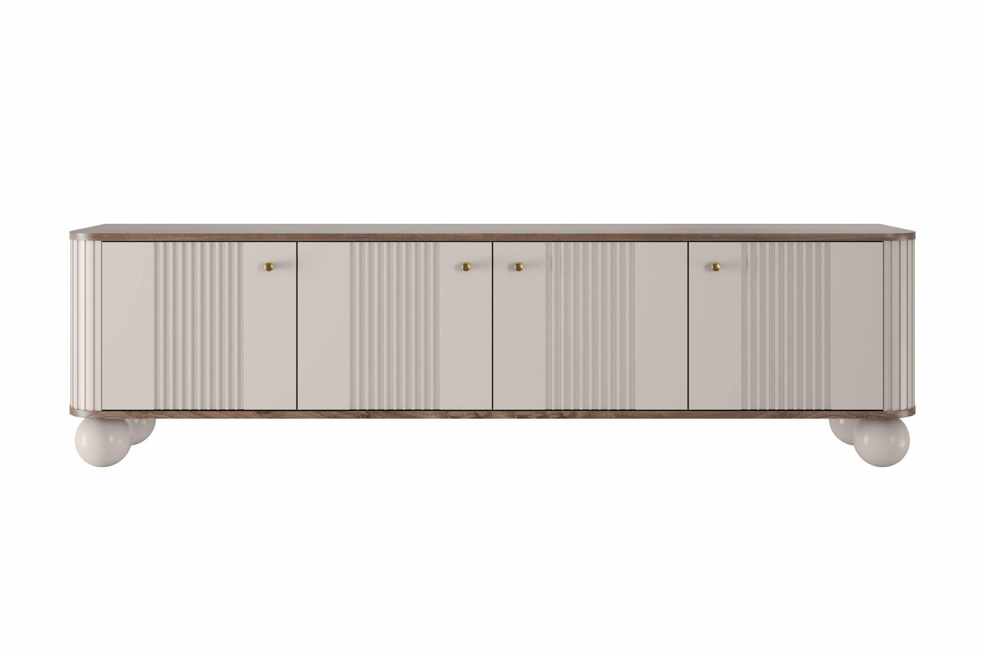 RTV skříňka Vesper 4D 187 cm - kašmír / ořech / zlaté úchyty / nohy koule, Šířka: 187, Výška: 48, Hloubka: 38, Výška nožek: 12, Hloubka desky: , Montáž: