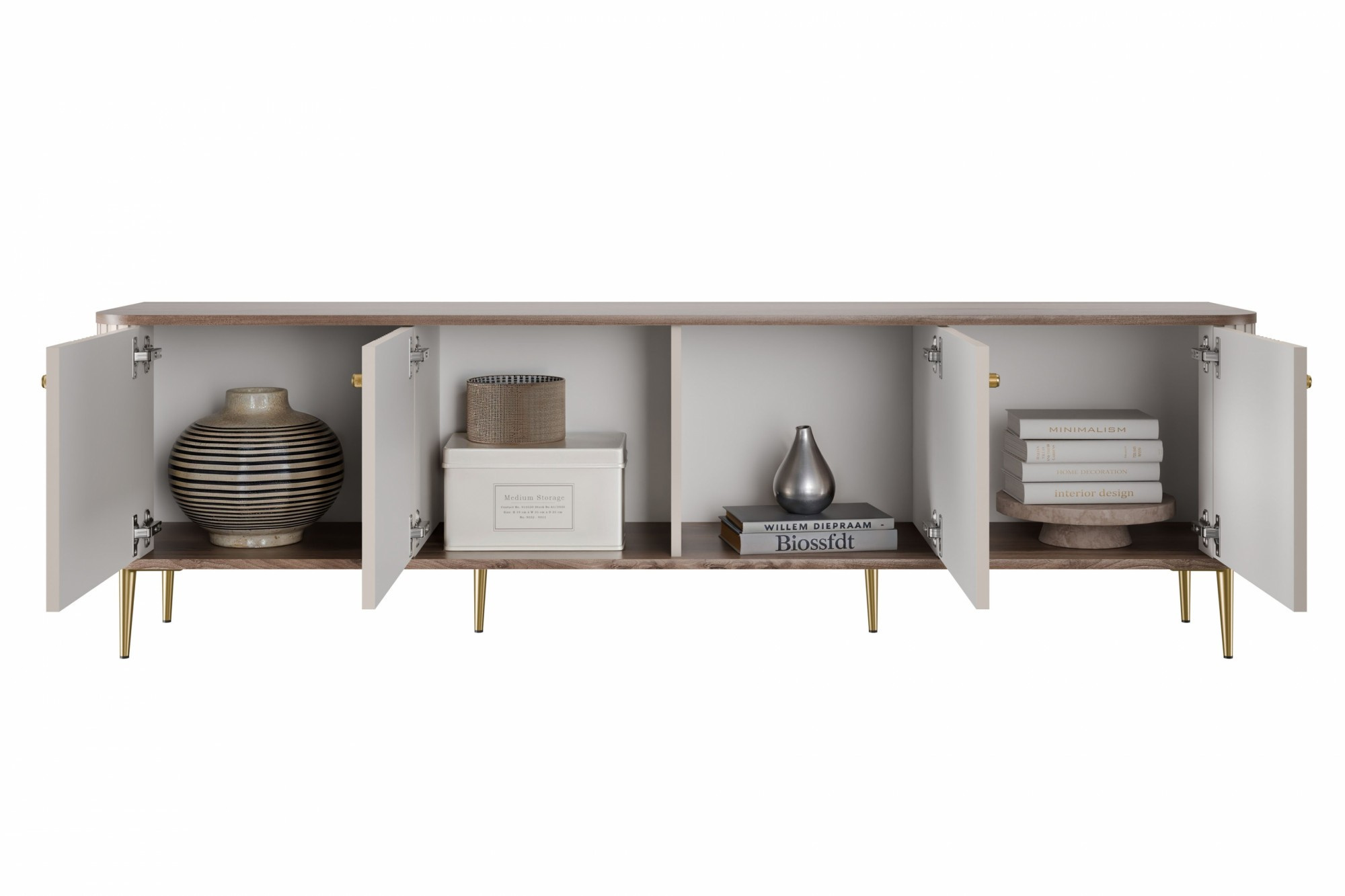 TV skříňka Vesper 4D 187 cm - kašmír / zlaté nohy, Šířka: 187, Výška: 51, Hloubka: 38, Výška nožek: 15, Hloubka desky: , Montáž: