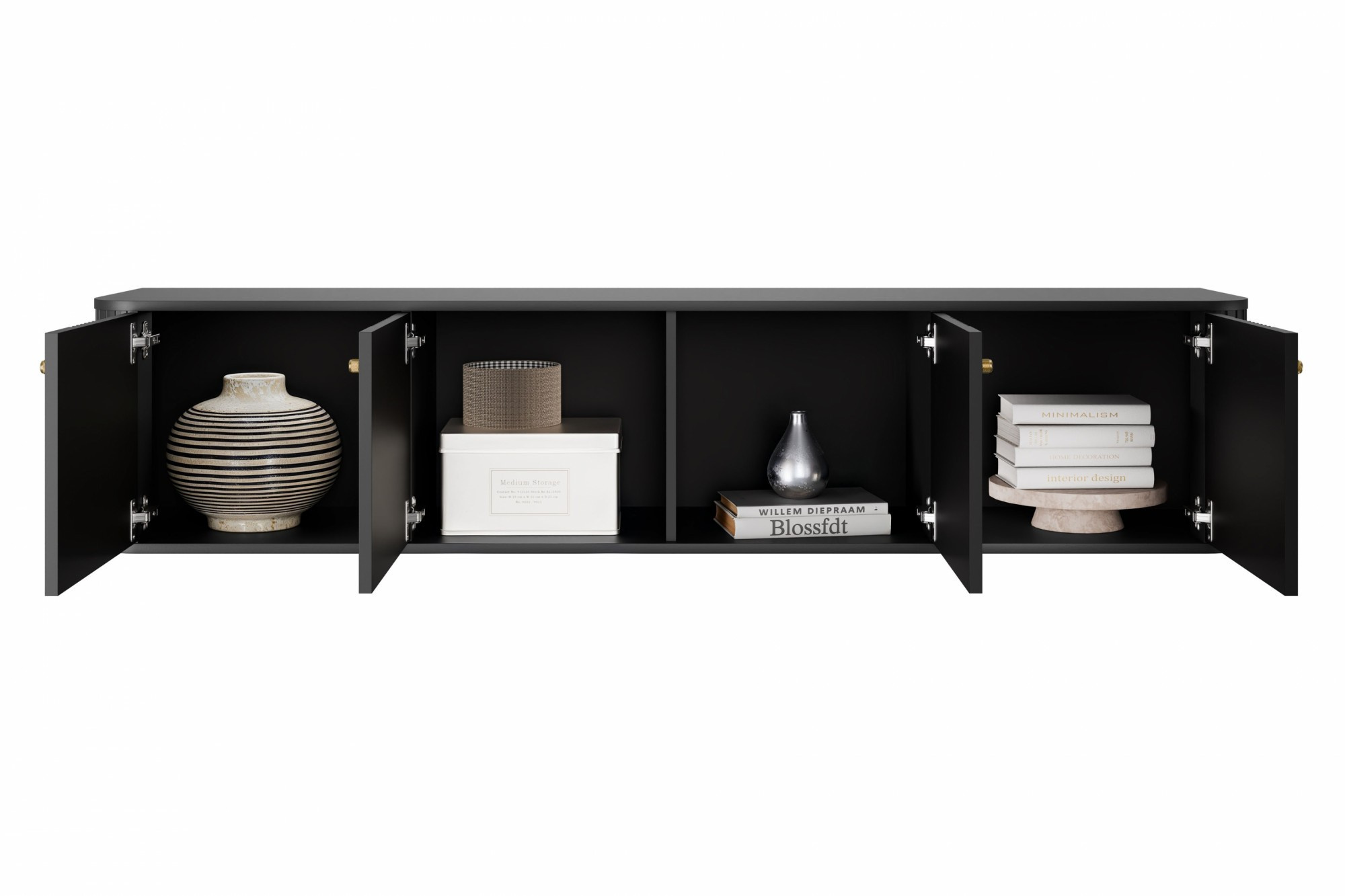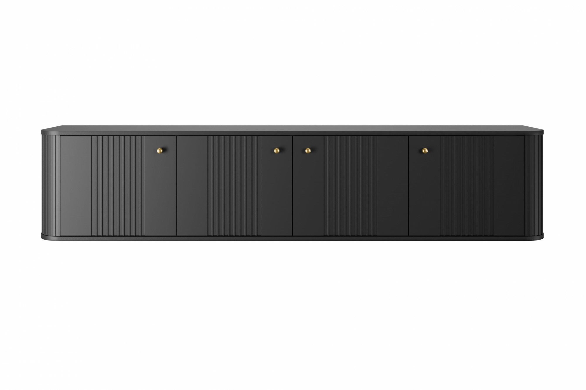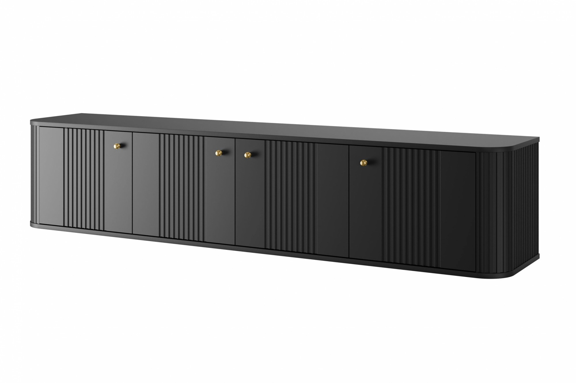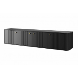 Závěsná TV skříňka Vesper 4D 187 cm - černá / zlaté úchyty, Šířka: 187, Výška: 36, Hloubka: 38, Výška nožiček: , Hloubka desky: , Montáž: