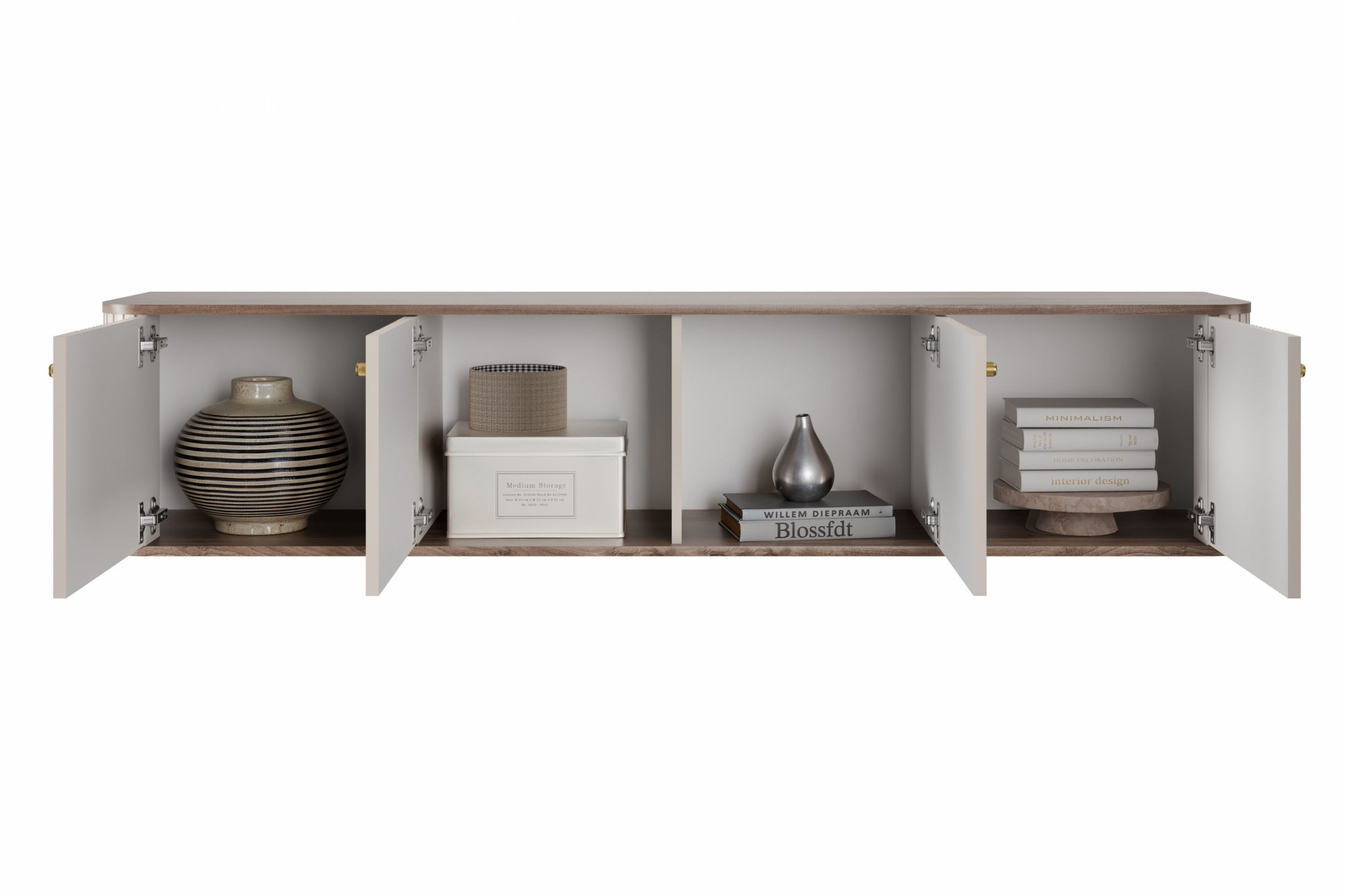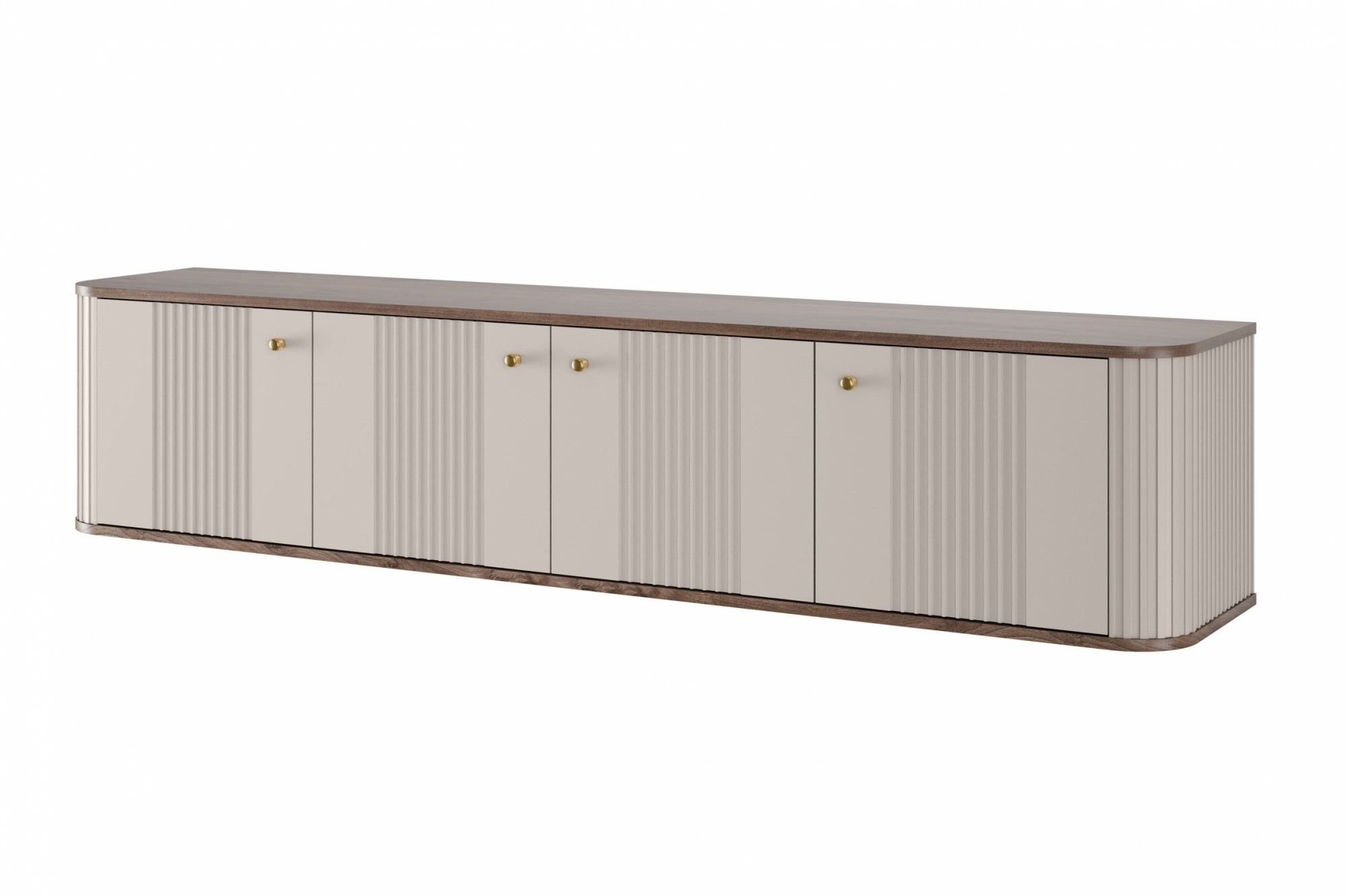 Závěsná TV skříňka Vesper 4D 187 cm - kašmír / ořech / zlaté úchyty, Šířka: 187, Výška: 36, Hloubka: 38, Výška nožek: , Hloubka desky: , Montáž: