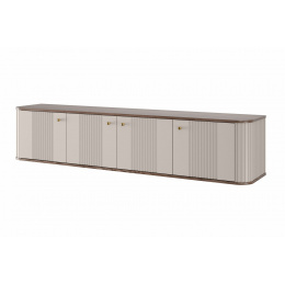 Závěsná TV komoda Vesper 4D, kašmír / ořech / zlaté úchyty