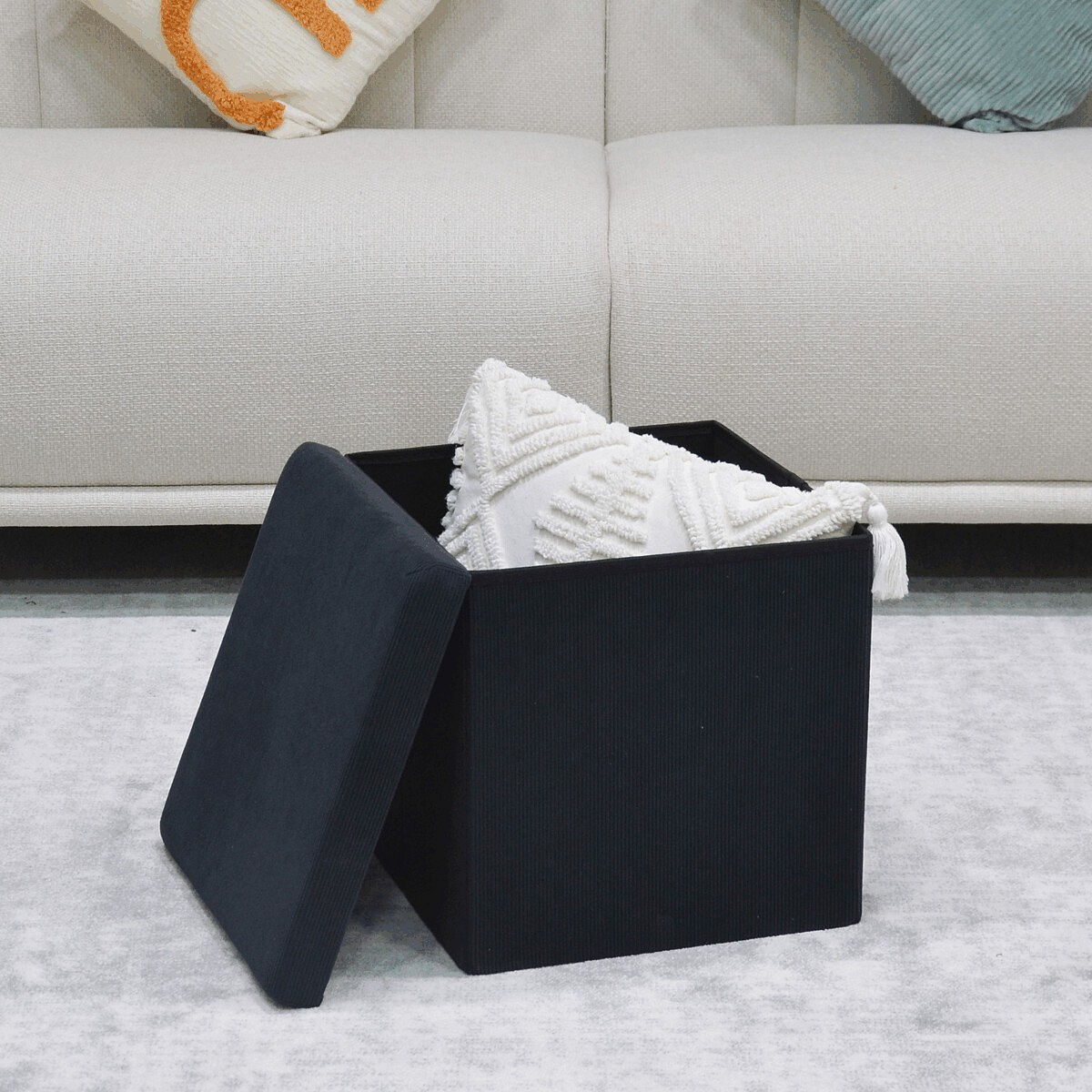 Taburet s úložným prostorem, černá, manšestrová látka, TAB-471 BK6