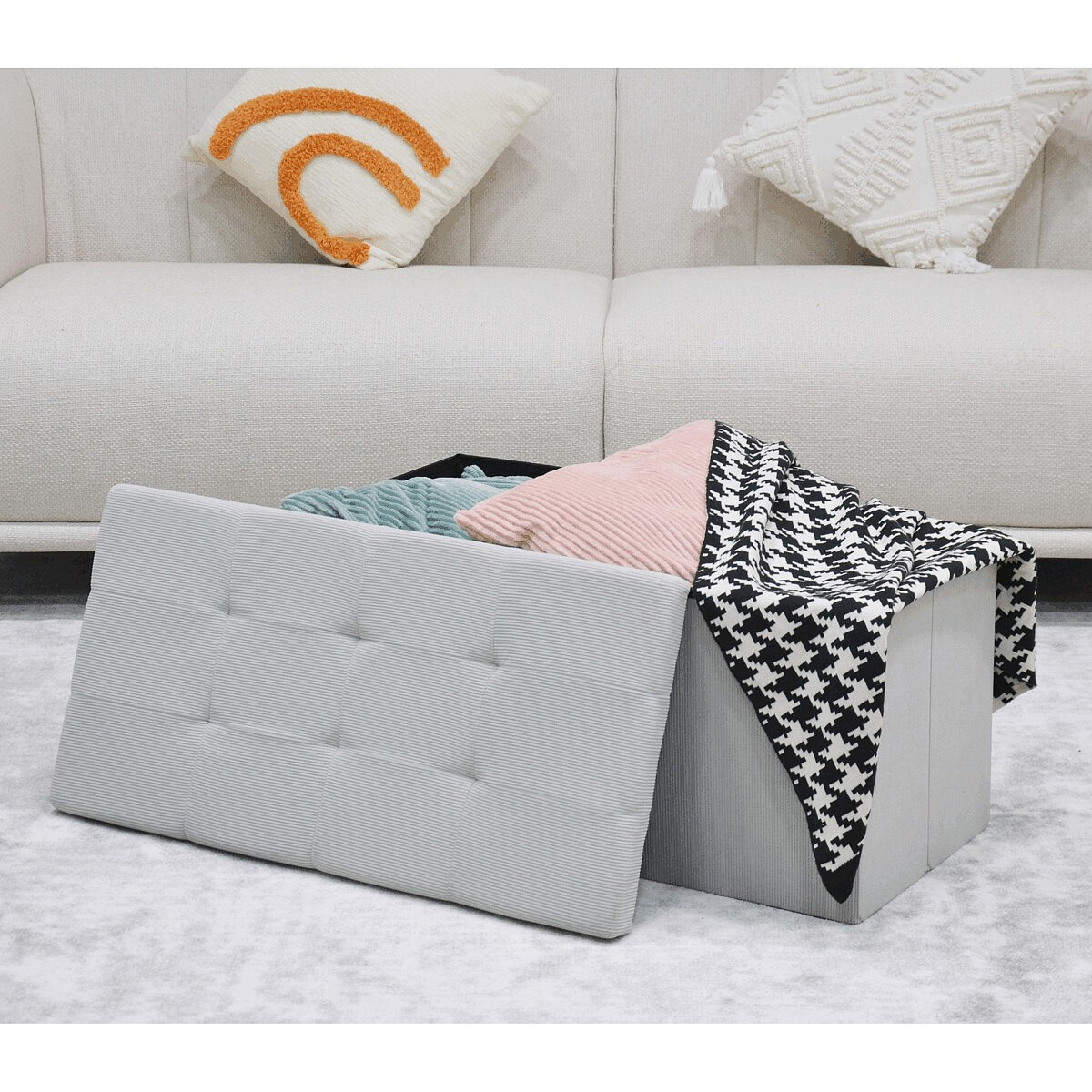 Taburet s úložným prostorem, krémová, manšestrová látka, TAB-472 CRM6