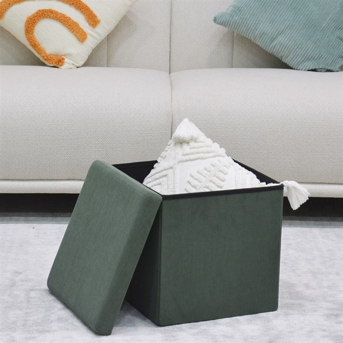 Taburet s úložným prostorem, zelená, manšestrová látka, TAB-471 GRN6