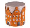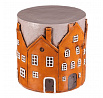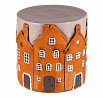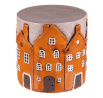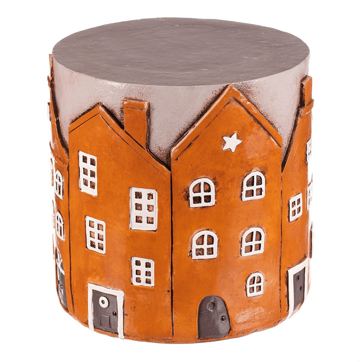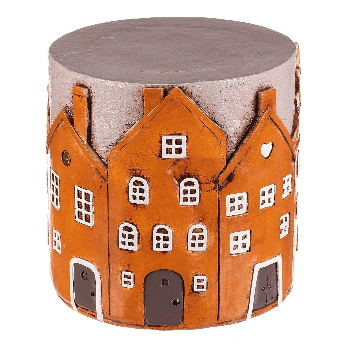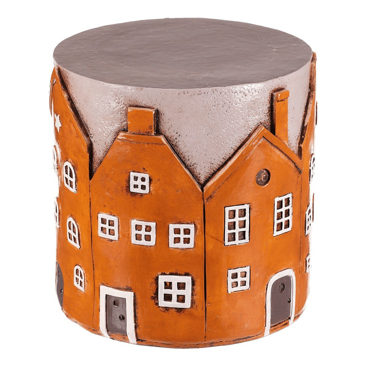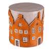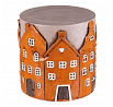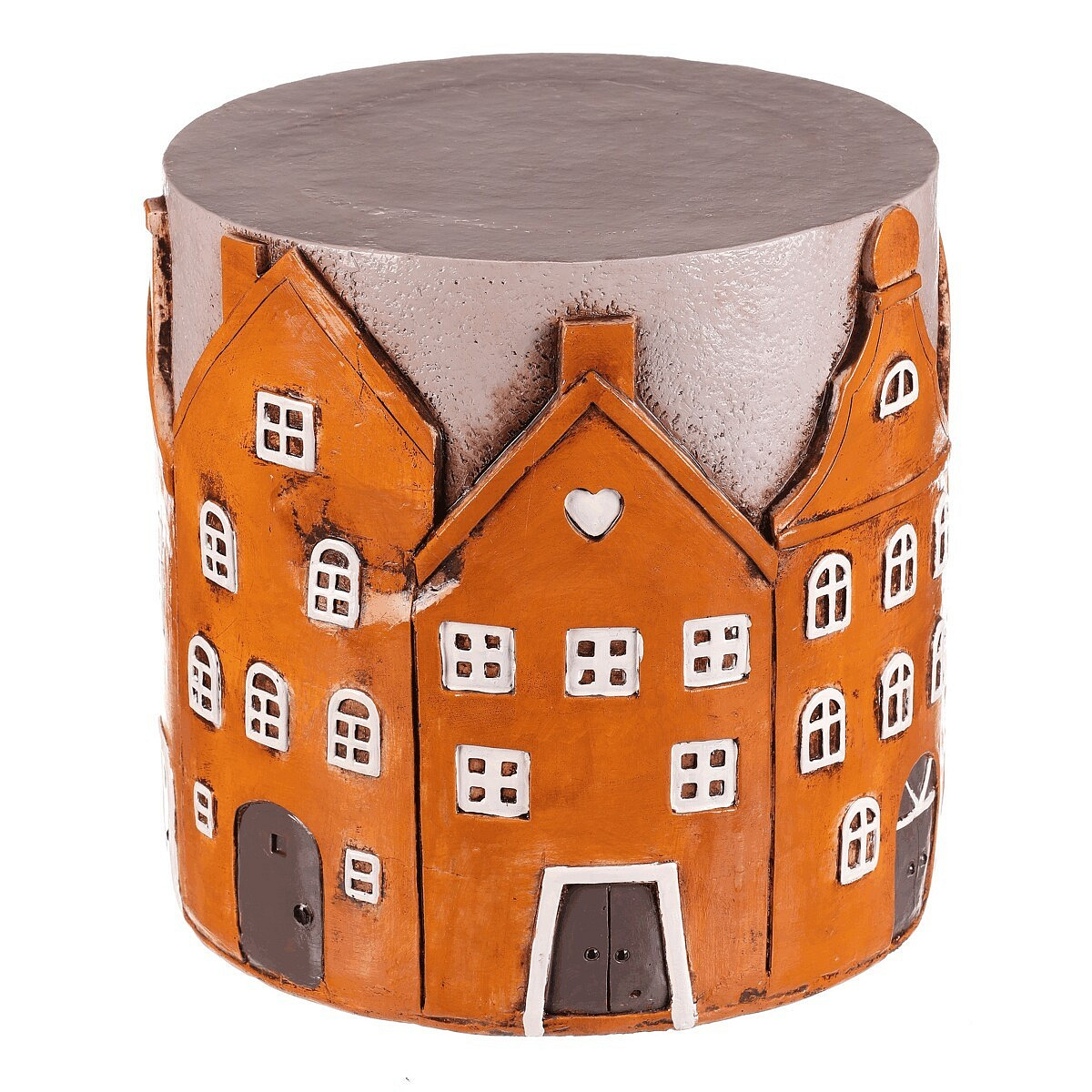 Taburet z magnesia s oranžovými domečky po obvodu je stylovou i praktickou dekorací, která přinese do vašeho interiéru jedineční design s podzimním nádechem. Jeho obvod je zdoben oranžově zbarvenou řadou domečků, což dodá prostoru na útulnosti a jedinečné atmosféře. Skvělý bude jako dekorace sám o sobě, jenž má navíc i každodenní praktické využití.