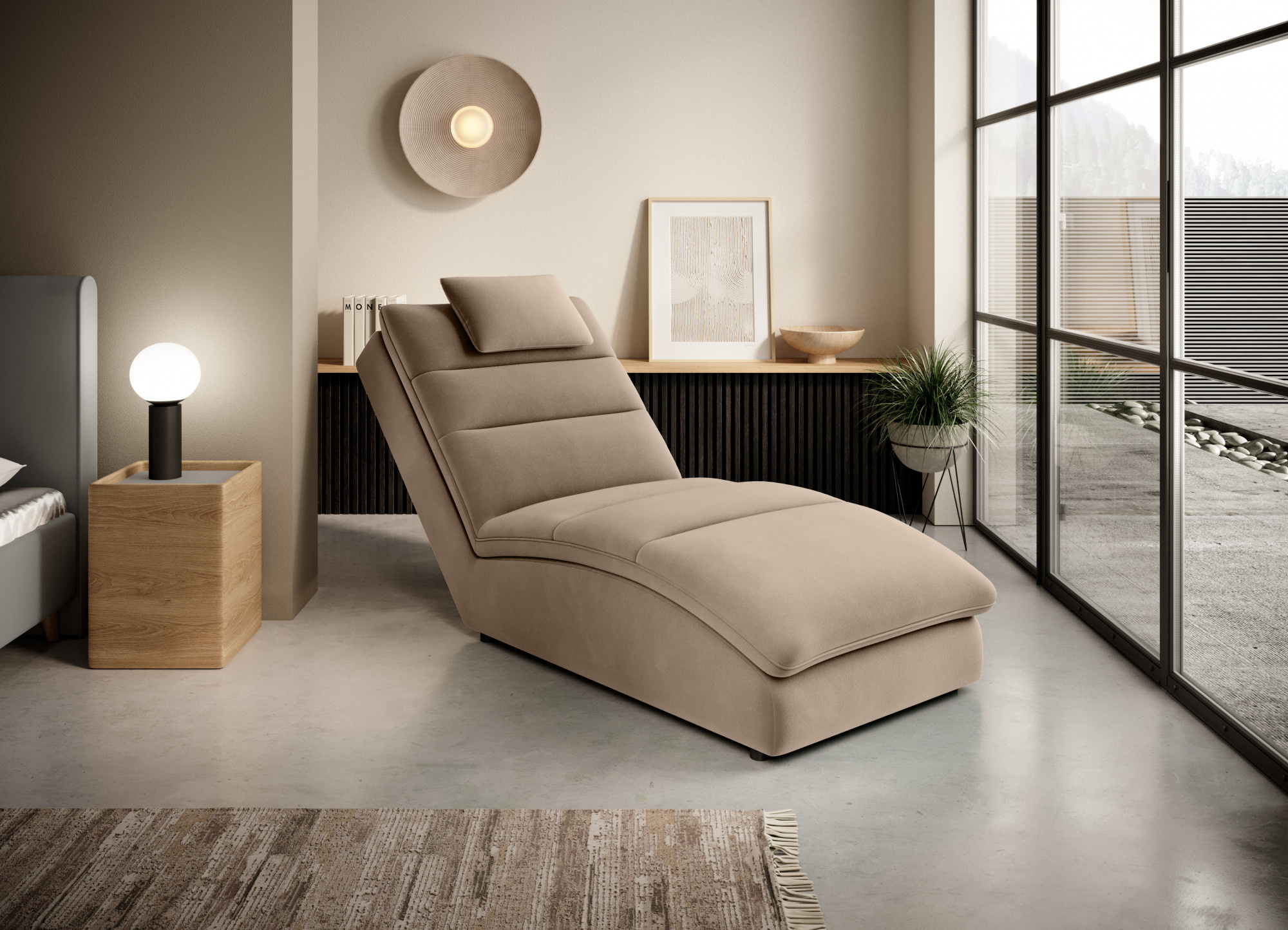 Lehátko Taco od ELTAP je ideálním prvkem pro výzdobu obývacího pokoje, ložnice nebo kanceláře. Jeho krásné čalounění je zdobeno horizontálním prošíváním, které dodává charakter celému tomuto kusu nábytku. Zdůrazňuje také svůj moderní minimalistický design. Další polštář na místo pro opření hlavy je prvek, který přidává ještě větší pohodlí při odpočinku na lehátku Taco. Hlavním prvkem zodpovědným za útulnost Taca je jeho náplň ve formě vysoce flexibilní HR pěny. Kromě své vysoké elasticity a poskytování dostatečné podpory pro tělo také HR pěna prodlužuje životnost kusu nábytku. Tato lenoška o rozměrech 85x170x95 cm má elegantně zakřivené opěradlo. Umožňuje vám pohodlně odpočívat a relaxovat, a zároveň dodává nádherný, exkluzivní vzhled jakémukoli typu dekoru.