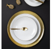 Klasický bílý porcelán s jemným zlatým okrajem, který zdůrazňuje krásu klasického tvaru talíře. Obohať prostírání svého stolu o eleganci talířů Pear Gold. Talíře Pearl Gold jsou k dispozici v ploché a hluboké verzi. Hlavní složení: Porcelán. Talíř není vhodný do myčky nádobí. Rozměry balení 31,00 x 29,00 x 30,00