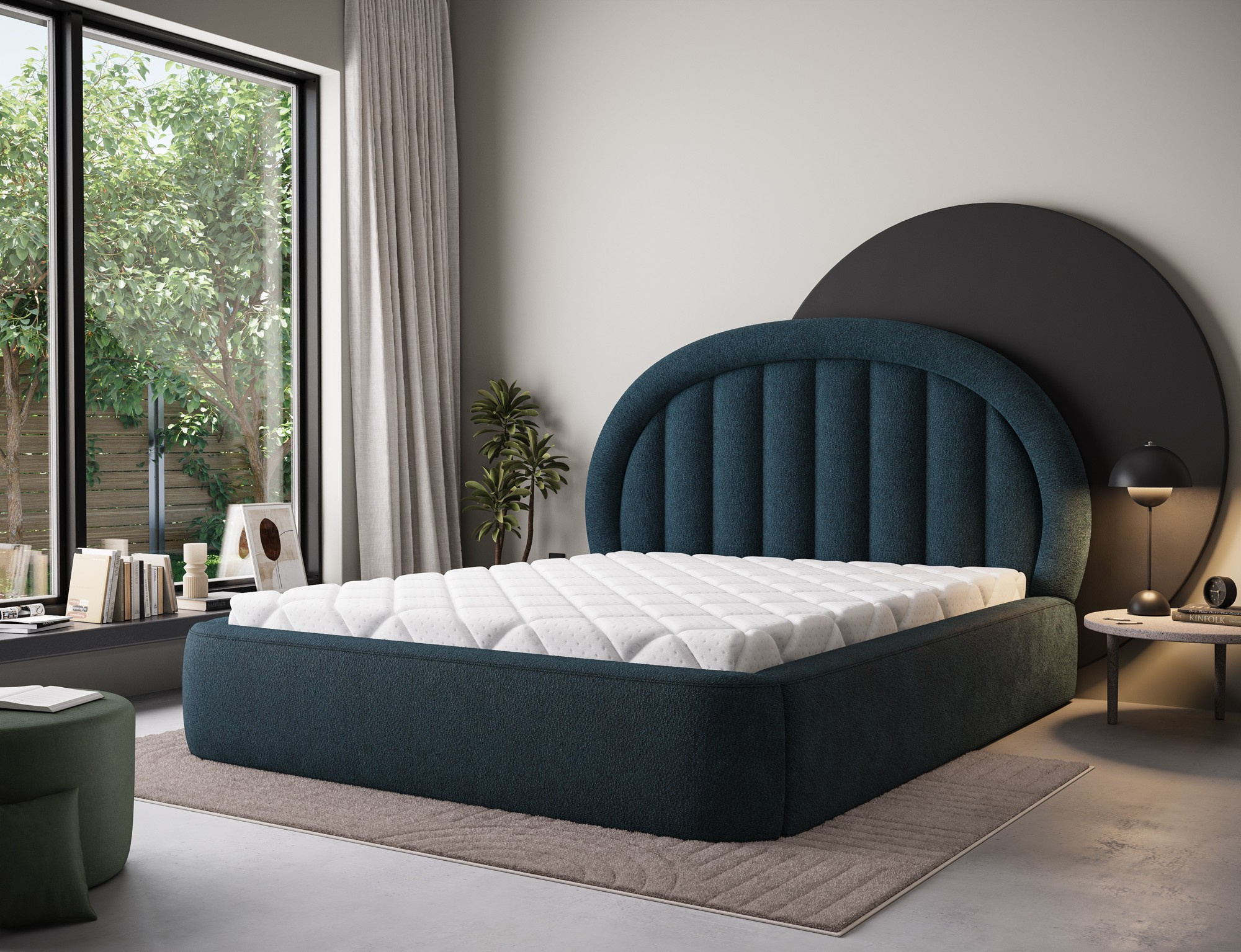 Postel do ložnice Tapedo kombinuje moderní design, funkčnost a pohodlí při spaní. Dostupné ve třech velikostních variantách: 140x200 cm, 160x200 cm a 180x200 cm, umožňuje přizpůsobit šířku vašim individuálním potřebám – 165 cm, 185 cm nebo 205 cm. Celková výška postele je 131 cm a hloubka je 221 cm, což konstrukci dodává elegantní a vyvážený vzhled. Výplň z vysoce kvalitní polyuretanové pěny T2130 zajišťuje optimální podporu těla a vynikající pohodlí. Postel Tapedo je vybavena praktickým úložným prostorem na lůžkoviny, který usnadňuje udržování pořádku ve vaší ložnici. Stabilní černé plastové nohy dodávají designu lehkost a moderní nádech. Díky své solidní řemeslné práci, funkčním vlastnostem a estetické formě, postel Tapedo dokonale doplňuje moderní interiérové uspořádání, čímž vytváří elegantní a útulný prostor pro odpočinek.