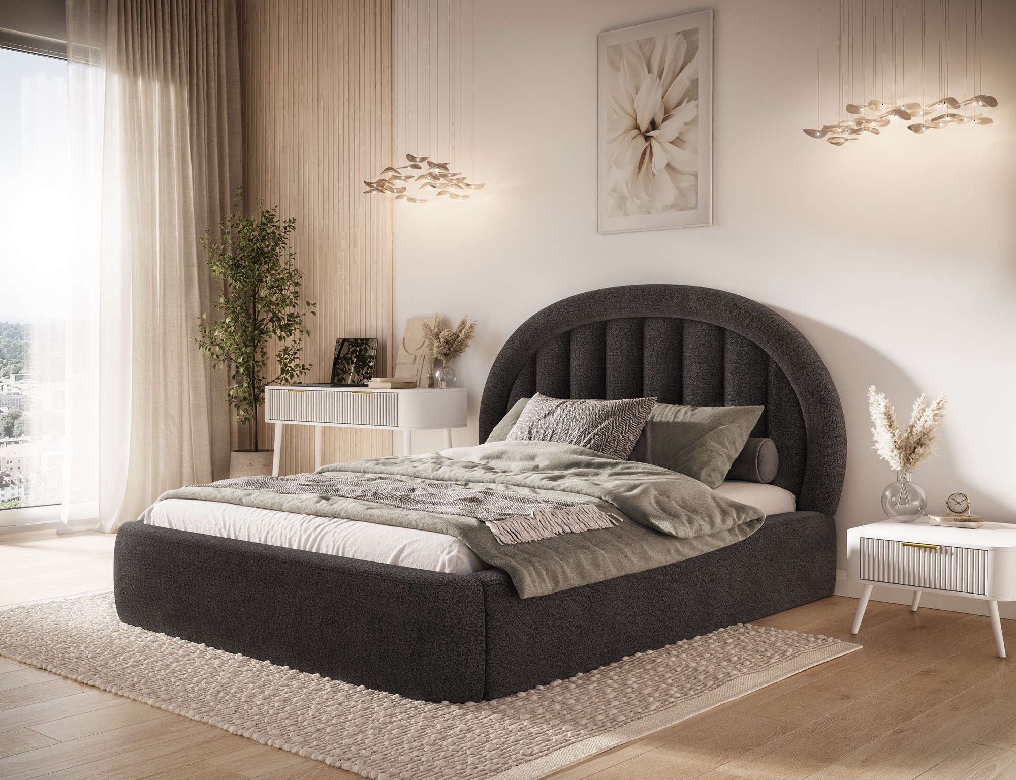 Postel do ložnice Tapedo kombinuje moderní design, funkčnost a pohodlí při spaní. Dostupné ve třech velikostních variantách: 140x200 cm, 160x200 cm a 180x200 cm, umožňuje přizpůsobit šířku vašim individuálním potřebám – 165 cm, 185 cm nebo 205 cm. Celková výška postele je 131 cm a hloubka je 221 cm, což konstrukci dodává elegantní a vyvážený vzhled. Výplň z vysoce kvalitní polyuretanové pěny T2130 zajišťuje optimální podporu těla a vynikající pohodlí. Postel Tapedo je vybavena praktickým úložným prostorem na lůžkoviny, který usnadňuje udržování pořádku ve vaší ložnici. Stabilní černé plastové nohy dodávají designu lehkost a moderní nádech. Díky své solidní řemeslné práci, funkčním vlastnostem a estetické formě, postel Tapedo dokonale doplňuje moderní interiérové uspořádání, čímž vytváří elegantní a útulný prostor pro odpočinek.
