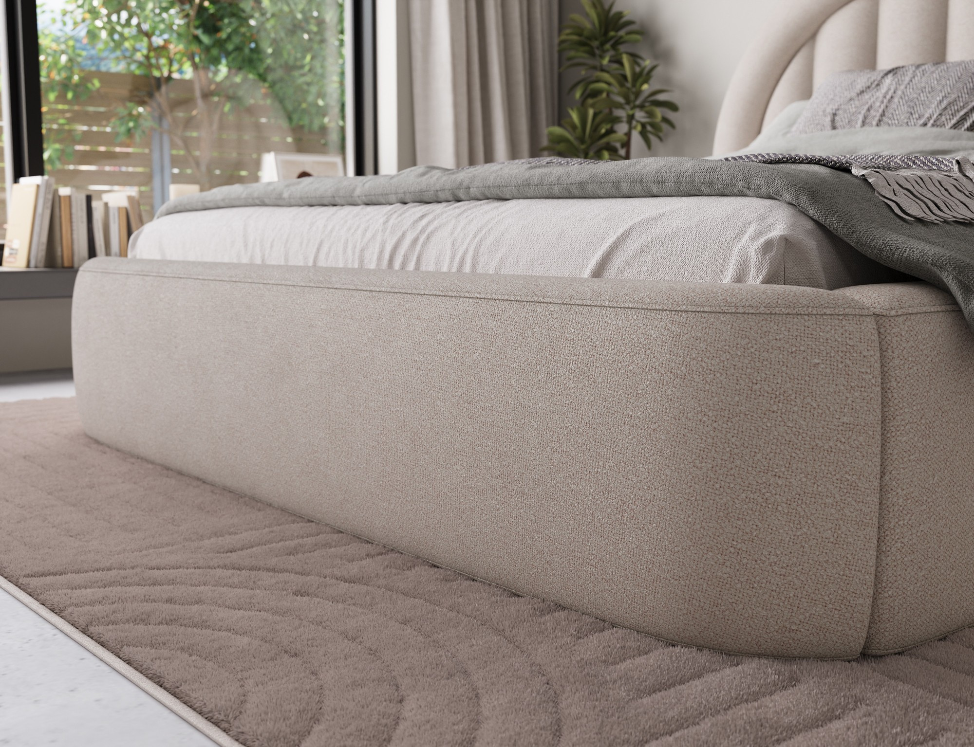 Postel do ložnice Tapedo kombinuje moderní design, funkčnost a pohodlí při spaní. Dostupné ve třech velikostních variantách: 140x200 cm, 160x200 cm a 180x200 cm, umožňuje přizpůsobit šířku vašim individuálním potřebám – 165 cm, 185 cm nebo 205 cm. Celková výška postele je 131 cm a hloubka je 221 cm, což konstrukci dodává elegantní a vyvážený vzhled. Výplň z vysoce kvalitní polyuretanové pěny T2130 zajišťuje optimální podporu těla a vynikající pohodlí. Postel Tapedo je vybavena praktickým úložným prostorem na lůžkoviny, který usnadňuje udržování pořádku ve vaší ložnici. Stabilní černé plastové nohy dodávají designu lehkost a moderní nádech. Díky své solidní řemeslné práci, funkčním vlastnostem a estetické formě, postel Tapedo dokonale doplňuje moderní interiérové uspořádání, čímž vytváří elegantní a útulný prostor pro odpočinek.
