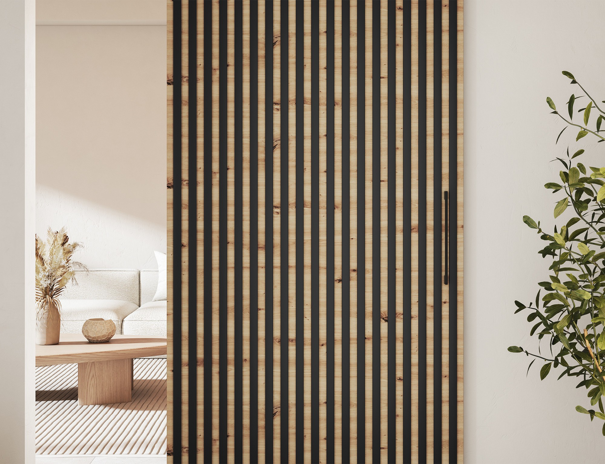 Posuvné dveře Tauricio, o rozměrech 96x205 cm, jsou moderním a funkčním interiérovým řešením vyrobeným z odolné dřevotřísky a syntetického materiálu v elegantním matně černém provedení, které dokonale doplňuje minimalistické a industriální interiéry. Systém All-in-One kombinuje plnou funkčnost v jedné konstrukci, vybavené hladce fungující kolejnicí, která zajišťuje tichý a pohodlný provoz, spolu s pevnou kartáčovanou hliníkovou rukojetí, která zdůrazňuje moderní charakter dveří. Ideální jako dělicí stěna, dveře šatníku, spíže nebo vstup do kanceláře, umožňující optimální využití prostoru. Sada neobsahuje montážní hmoždinky do zdi – jejich výběr by měl být individuálně přizpůsoben typu povrchu zdi, aby byla zajištěna stabilní a bezpečná instalace. Posuvné dveře Tauricio jsou stylovou a praktickou volbou pro náročné uživatele, kteří si cení estetiky a odolnosti.
