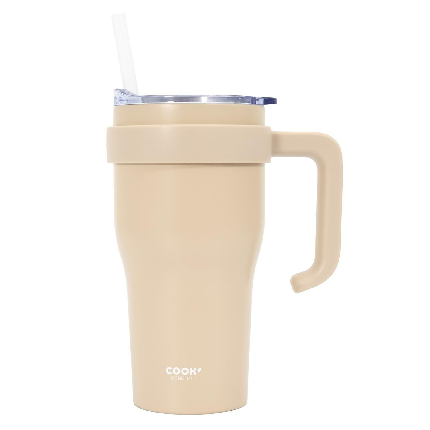 Termohrnek s uchem a brčkem Miami 600ml béžový