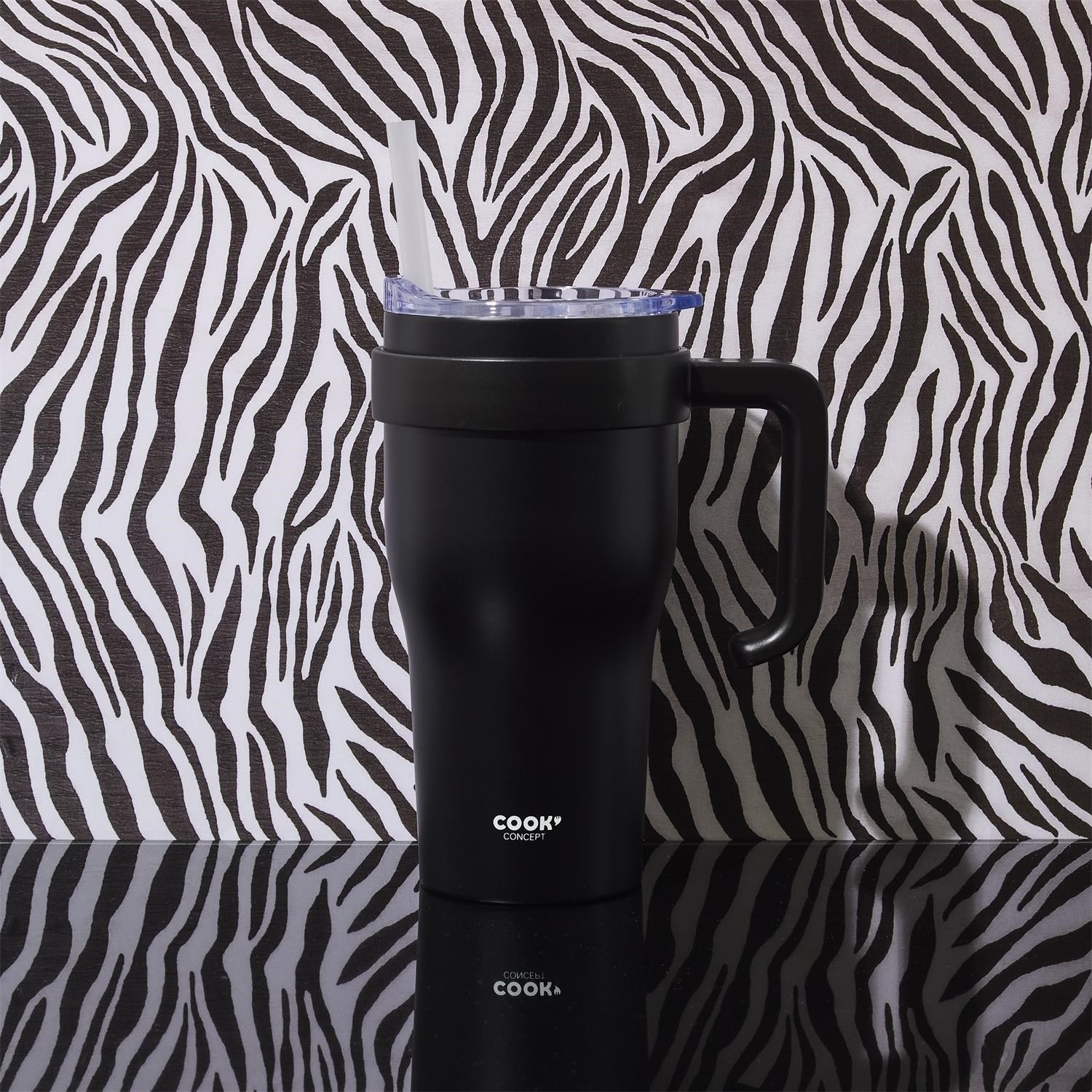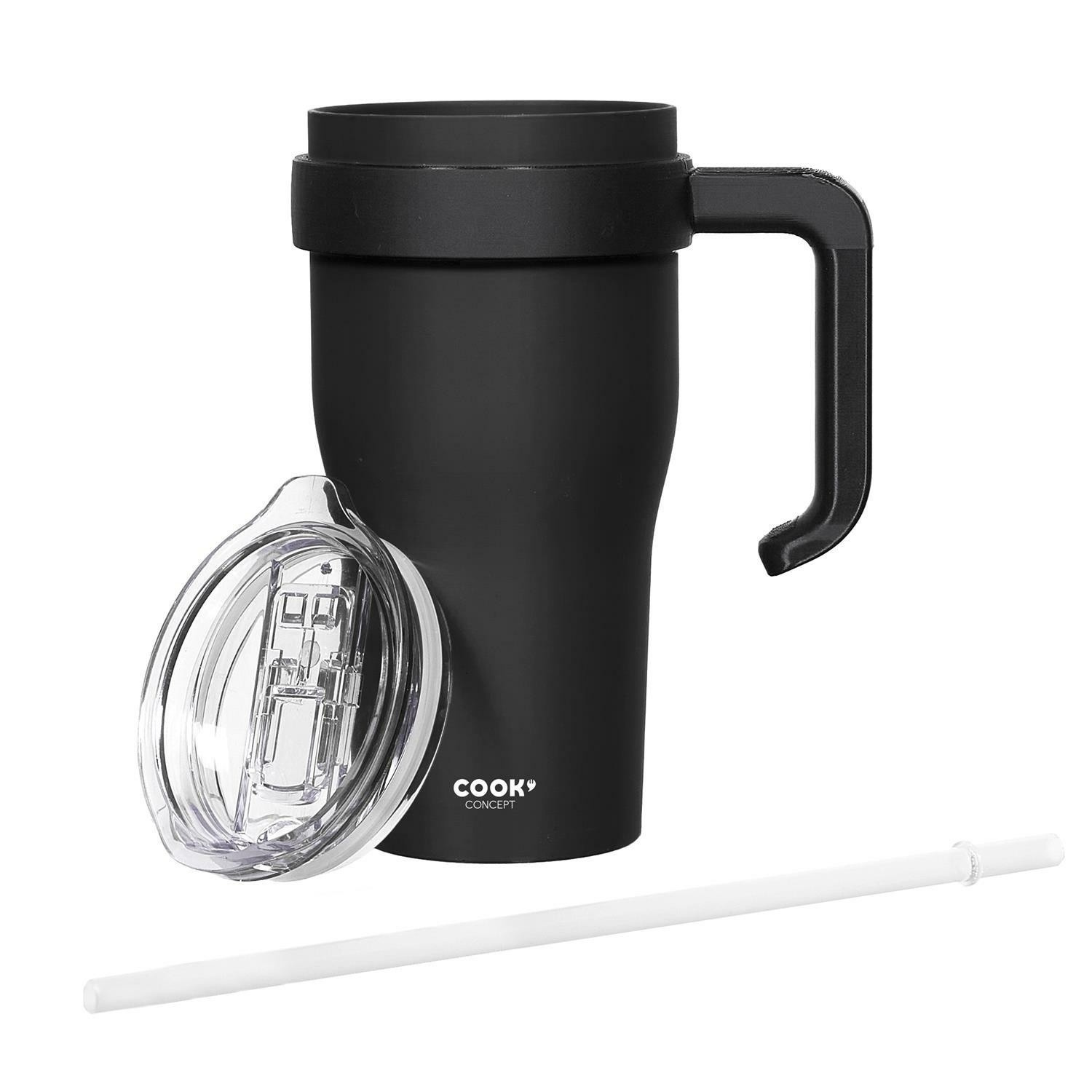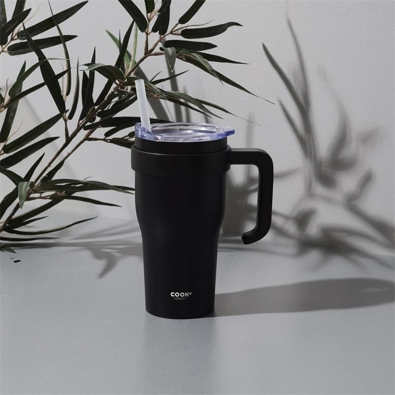 Termohrnek s uchem a brčkem Miami 600ml černý