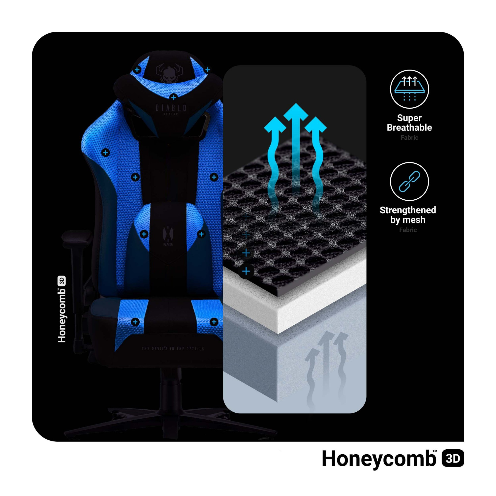 Užijte si pohodlí i během nejnáročnějších herních maratonů! Čalounění z kombinace tkaniny EcoFiber™ a síťoviny Honeycomb™ zajišťuje optimální prodyšnost a odvod vlhkosti. I v horkých letních dnech se budete cítit svěže a komfortně. Odolné tkaniny, zesílené švy Nylon™ LV3 a kvalitní zpracování zaručují dlouhou životnost a perfektní vzhled křesla po mnoho let.