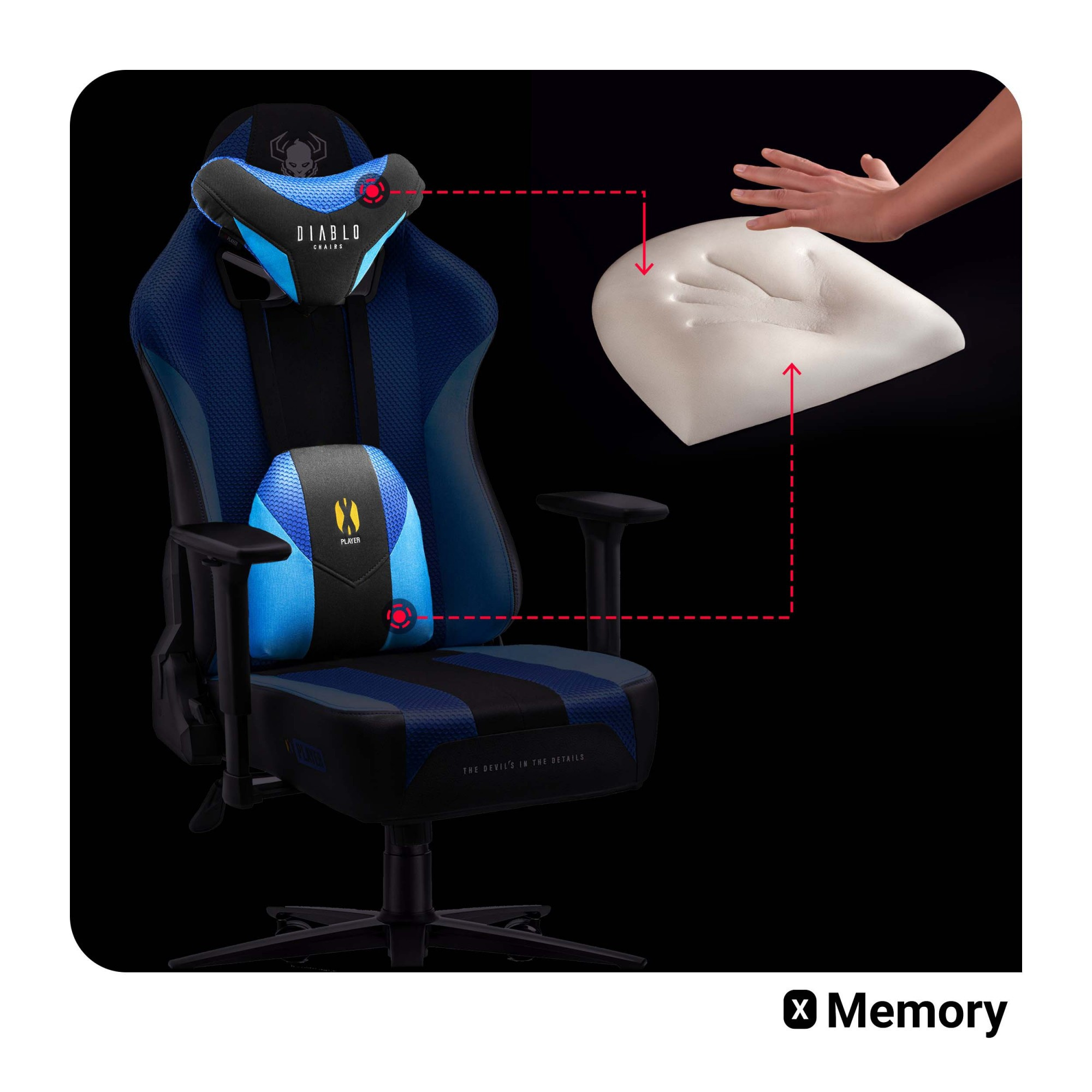 Díky těmto ergonomickým prvkům zaujme vaše páteř správné nastavení po celé délce, což vám pomůže vyhnout se mnoha negativním důsledkům dlouhodobého sezení. Pružná paměťová pěna, kterou jsme vyplnili polštáře opěradla, se chytře přizpůsobuje tvaru zad a síle tlaku celého těla, což usnadňuje přirozené přijetí ergonomické polohy a činí ji ještě pohodlnější.