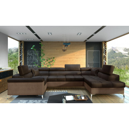 Thiago je multifunkční, elegantní a prostorná rohová pohovka ve tvaru U, která může být luxusním zakončením každého obývacího pokoje. Jedná se o vysoce kvalitní kus nábytku, synonymum pohodlí a elegance, mimo jiné díky inovativní HR pěně, která zvyšuje pružnost a odolnost sedáku. Za Thiagem s rozměry 350 x 202 x 90 cm se neskrývá jen pohodlí, ale také dobře prospané noci díky velké spací ploše. Skládací typ mechanismu delfín vám umožňuje snadno a bez námahy rozložit pohovku, která má tvar prostorné postele o rozměrech 125 x 265 cm. Kromě toho je naše rohová pohovka také vybavena praktickým a prostorným úložným prostorem na lůžkoviny, který se nachází v otomanu.Mezi vlastnosti tohoto modelu můžeme zahrnout širokou opěrku rukou, čalouněné opěradlo, nastavitelné opěrky hlavy, dekorativní polštář v ceně, stejně jako množství variant v bohatých barvách. Pokud jste zvědaví, co dalšího náš Thiago nabízí - zveme vás k vyzkoušení této rohové pohovky.
