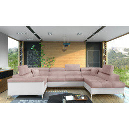 Thiago je multifunkční, elegantní a prostorná rohová pohovka ve tvaru U, která může být luxusním zakončením každého obývacího pokoje. Jedná se o vysoce kvalitní kus nábytku, synonymum pohodlí a elegance, mimo jiné díky inovativní HR pěně, která zvyšuje pružnost a odolnost sedáku. Za Thiagem s rozměry 350 x 202 x 90 cm se neskrývá jen pohodlí, ale také dobře prospané noci díky velké spací ploše. Skládací typ mechanismu delfín vám umožňuje snadno a bez námahy rozložit pohovku, která má tvar prostorné postele o rozměrech 125 x 265 cm. Kromě toho je naše rohová pohovka také vybavena praktickým a prostorným úložným prostorem na lůžkoviny, který se nachází v otomanu.Mezi vlastnosti tohoto modelu můžeme zahrnout širokou opěrku rukou, čalouněné opěradlo, nastavitelné opěrky hlavy, dekorativní polštář v ceně, stejně jako množství variant v bohatých barvách. Pokud jste zvědaví, co dalšího náš Thiago nabízí - zveme vás k vyzkoušení této rohové pohovky.