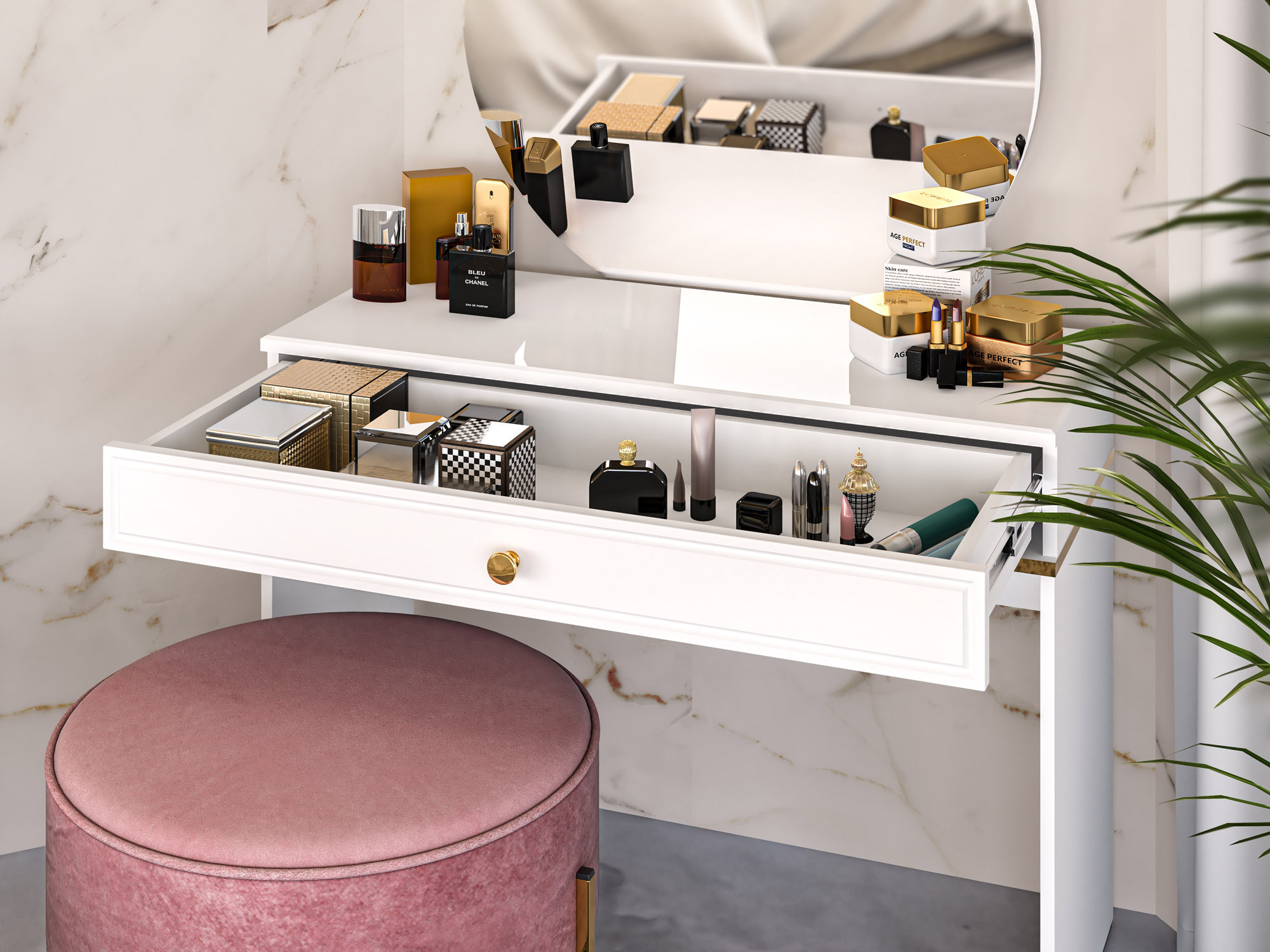 Toaletní stolek GOLDIN 10, Alpská bílá/Bílý Lesk