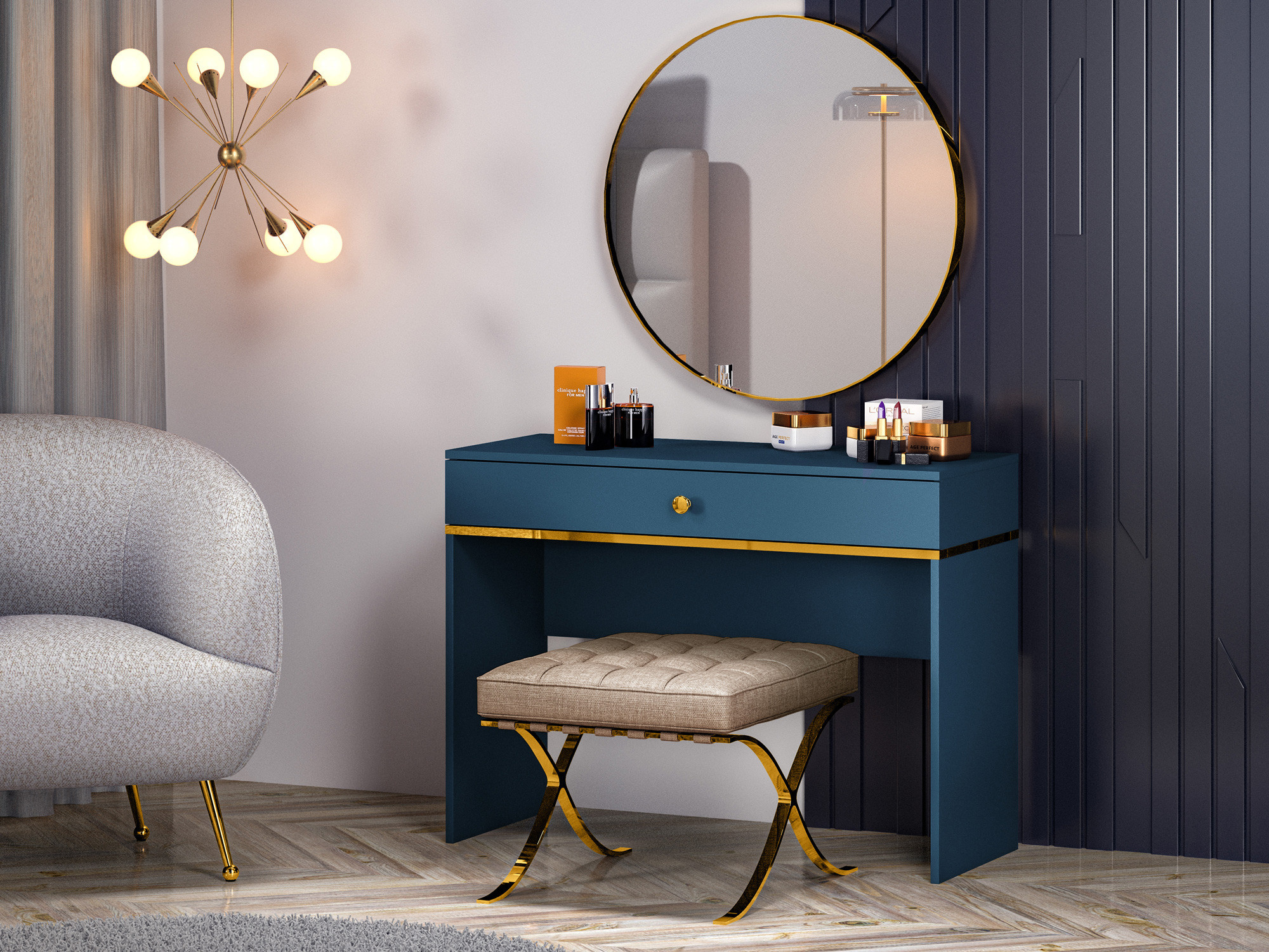 Toaletní stolek MARINE 09, Tmavě modrá/Zlatá