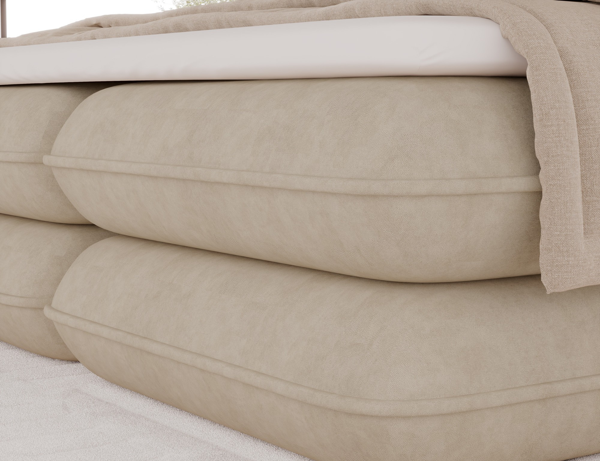 The Tonila bed is a modern and functional upholstered bed that combines sleeping comfort with practical solutions for the bedroom, making it an excellent choice for both contemporary and classic interiors; its solid construction with a height of 127 cm and a length of 235 cm ensures stability and comfortable back support, while the seat filling consisting of T2130 foam (storage box), bonell springs, and T2540 foam with a thickness of 2.5 cm provides proper body support and a high level of everyday comfort; the bed is equipped with a practical bedding storage compartment, which helps keep the bedroom organized, and the overall design is complemented by black furniture legs that add a modern and lightweight character; the Tonila model is available in three popular sizes: 140x200 cm, 160x200 cm, and 180x200 cm, allowing easy adjustment to the size of the room and individual needs, making it a comfortable, durable, and stylish bed for the bedroom.