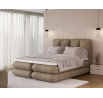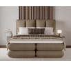 The Tonila bed is a modern and functional upholstered bed that combines sleeping comfort with practical solutions for the bedroom, making it an excellent choice for both contemporary and classic interiors; its solid construction with a height of 127 cm and a length of 235 cm ensures stability and comfortable back support, while the seat filling consisting of T2130 foam (storage box), bonell springs, and T2540 foam with a thickness of 2.5 cm provides proper body support and a high level of everyday comfort; the bed is equipped with a practical bedding storage compartment, which helps keep the bedroom organized, and the overall design is complemented by black furniture legs that add a modern and lightweight character; the Tonila model is available in three popular sizes: 140x200 cm, 160x200 cm, and 180x200 cm, allowing easy adjustment to the size of the room and individual needs, making it a comfortable, durable, and stylish bed for the bedroom.