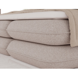 The Tonila bed is a modern and functional upholstered bed that combines sleeping comfort with practical solutions for the bedroom, making it an excellent choice for both contemporary and classic interiors; its solid construction with a height of 127 cm and a length of 235 cm ensures stability and comfortable back support, while the seat filling consisting of T2130 foam (storage box), bonell springs, and T2540 foam with a thickness of 2.5 cm provides proper body support and a high level of everyday comfort; the bed is equipped with a practical bedding storage compartment, which helps keep the bedroom organized, and the overall design is complemented by black furniture legs that add a modern and lightweight character; the Tonila model is available in three popular sizes: 140x200 cm, 160x200 cm, and 180x200 cm, allowing easy adjustment to the size of the room and individual needs, making it a comfortable, durable, and stylish bed for the bedroom.