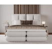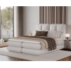 The Tonila bed is a modern and functional upholstered bed that combines sleeping comfort with practical solutions for the bedroom, making it an excellent choice for both contemporary and classic interiors; its solid construction with a height of 127 cm and a length of 235 cm ensures stability and comfortable back support, while the seat filling consisting of T2130 foam (storage box), bonell springs, and T2540 foam with a thickness of 2.5 cm provides proper body support and a high level of everyday comfort; the bed is equipped with a practical bedding storage compartment, which helps keep the bedroom organized, and the overall design is complemented by black furniture legs that add a modern and lightweight character; the Tonila model is available in three popular sizes: 140x200 cm, 160x200 cm, and 180x200 cm, allowing easy adjustment to the size of the room and individual needs, making it a comfortable, durable, and stylish bed for the bedroom.