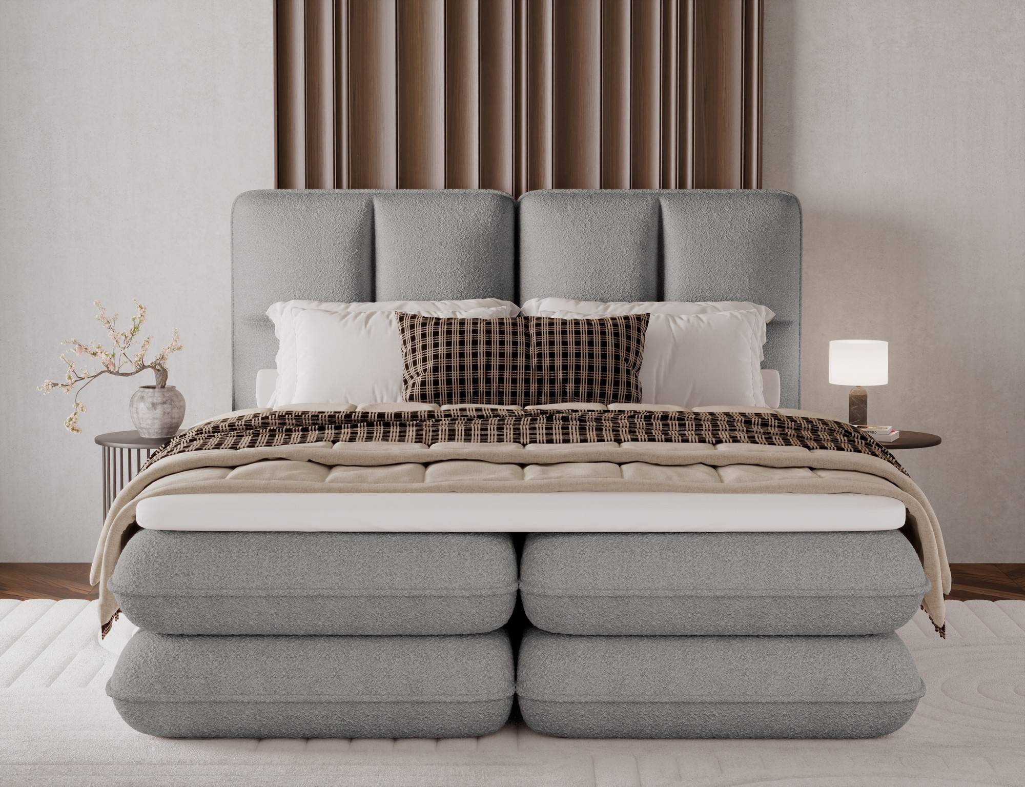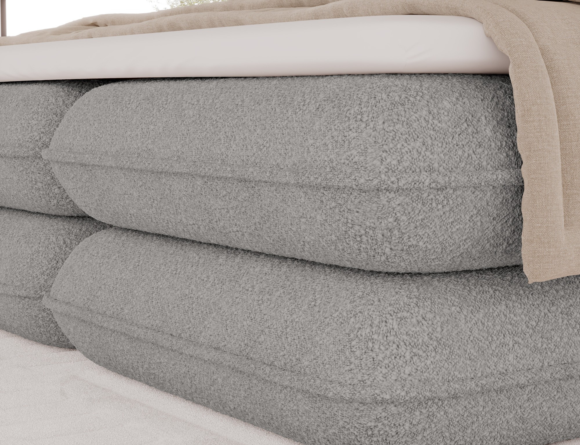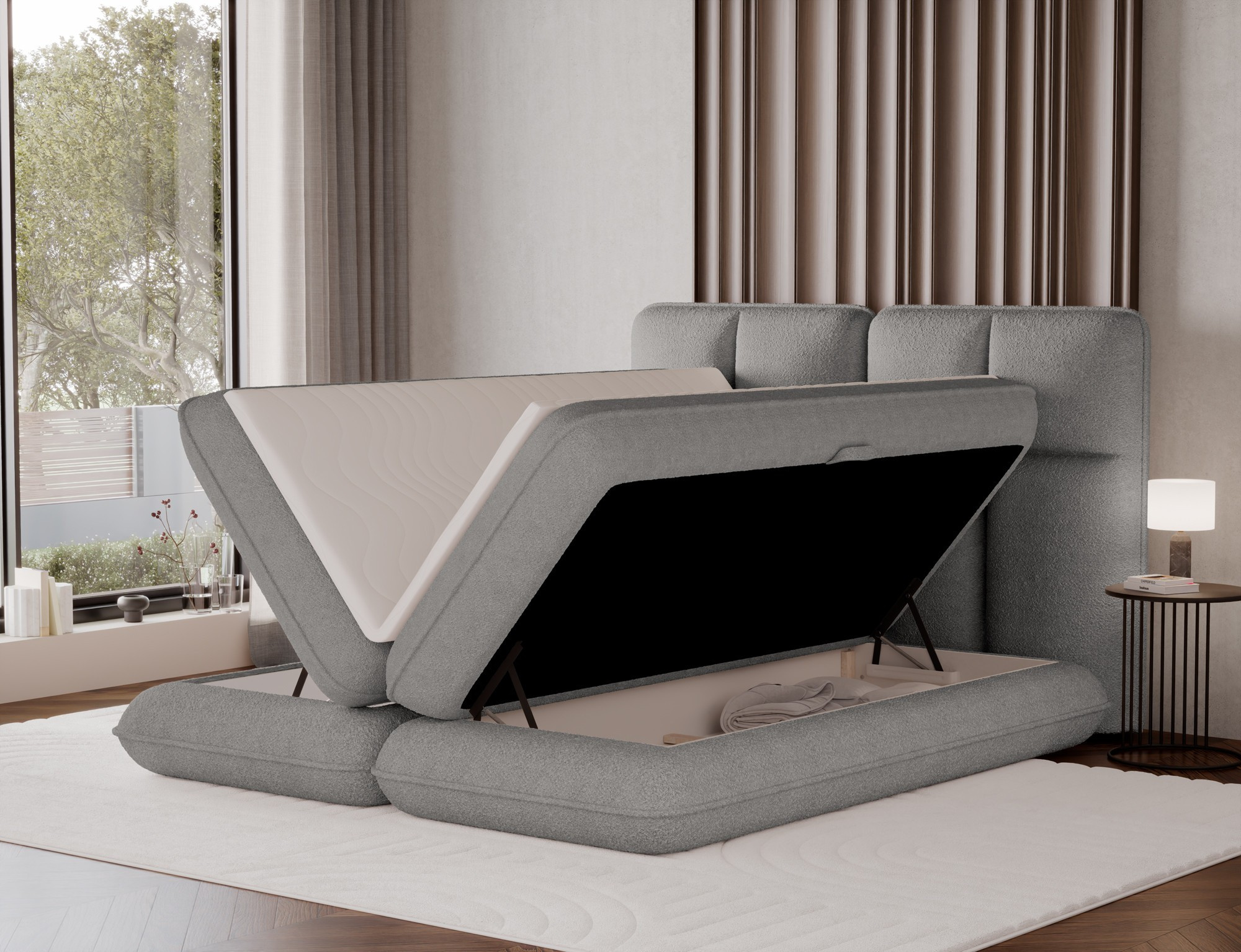 The Tonila bed is a modern and functional upholstered bed that combines sleeping comfort with practical solutions for the bedroom, making it an excellent choice for both contemporary and classic interiors; its solid construction with a height of 127 cm and a length of 235 cm ensures stability and comfortable back support, while the seat filling consisting of T2130 foam (storage box), bonell springs, and T2540 foam with a thickness of 2.5 cm provides proper body support and a high level of everyday comfort; the bed is equipped with a practical bedding storage compartment, which helps keep the bedroom organized, and the overall design is complemented by black furniture legs that add a modern and lightweight character; the Tonila model is available in three popular sizes: 140x200 cm, 160x200 cm, and 180x200 cm, allowing easy adjustment to the size of the room and individual needs, making it a comfortable, durable, and stylish bed for the bedroom.