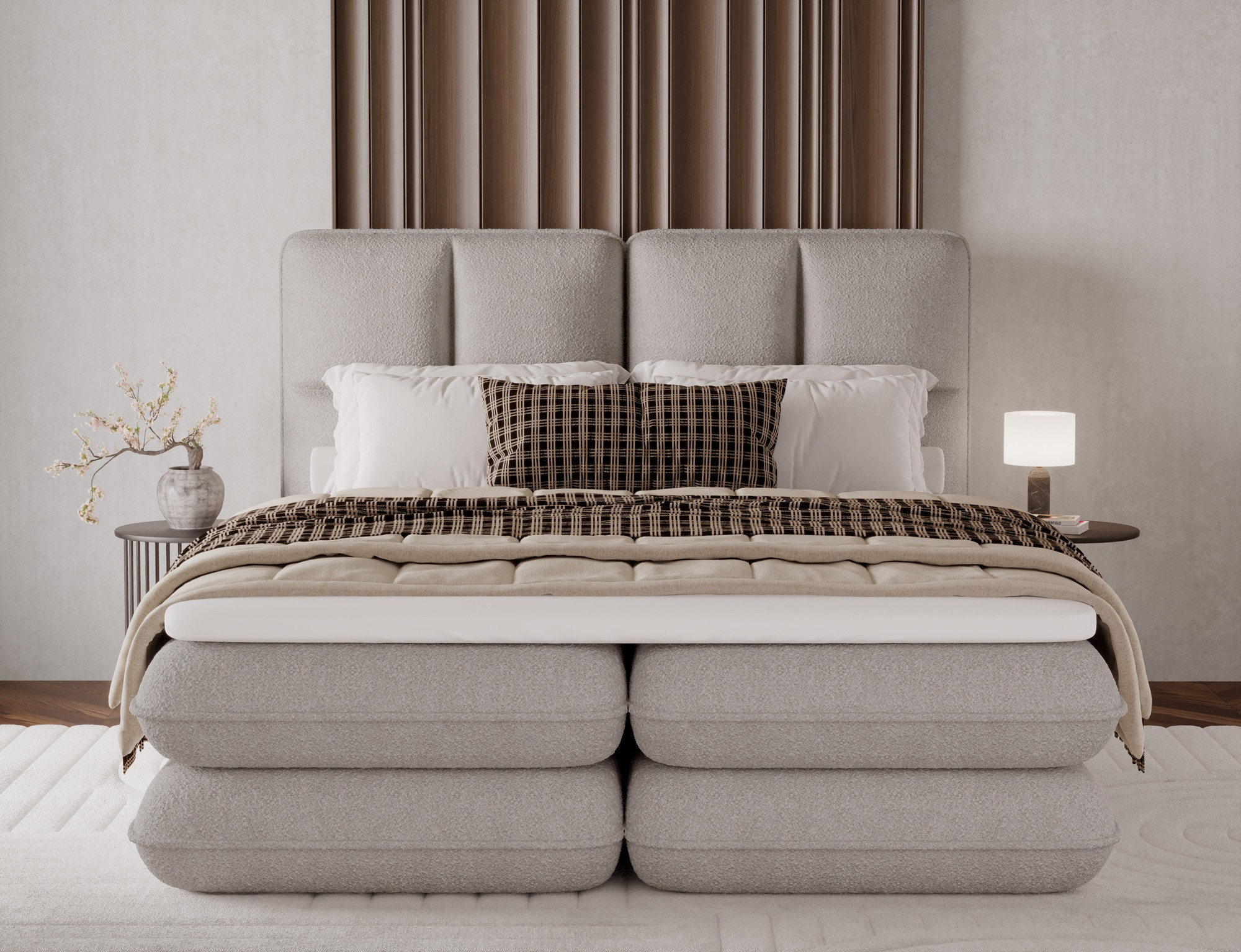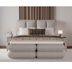 The Tonila bed is a modern and functional upholstered bed that combines sleeping comfort with practical solutions for the bedroom, making it an excellent choice for both contemporary and classic interiors; its solid construction with a height of 127 cm and a length of 235 cm ensures stability and comfortable back support, while the seat filling consisting of T2130 foam (storage box), bonell springs, and T2540 foam with a thickness of 2.5 cm provides proper body support and a high level of everyday comfort; the bed is equipped with a practical bedding storage compartment, which helps keep the bedroom organized, and the overall design is complemented by black furniture legs that add a modern and lightweight character; the Tonila model is available in three popular sizes: 140x200 cm, 160x200 cm, and 180x200 cm, allowing easy adjustment to the size of the room and individual needs, making it a comfortable, durable, and stylish bed for the bedroom.