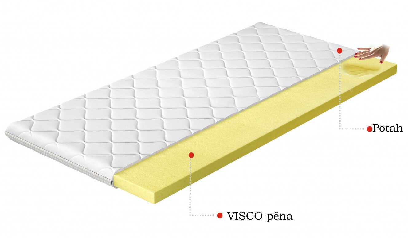 Visco topper matrace je typ krytu pro hlavní matraci, který je k dispozici až v 7 velikostech, takže se přizpůsobí velikostem matrací dostupných na trhu. Jedná se o oboustrannou matraci, což znamená, že ji lze uspořádat podle vašich preferencí. Jeho účelem je chránit základní matraci před nečistotami nebo poškozením a také změnit úroveň tvrdosti. Topper je vyroben z pěny o tloušťce 4 centimetry. Termosenzitivní materiál se dokonale přizpůsobí tvaru těla, protože reaguje na teplo. Kromě toho matrace s topperem Visco pomáhá rovnoměrně rozložit váhu, takže spánek je ještě pohodlnější. Visco topper má snímatelný hypoalergenní potah, takže potah lze prát pro ještě větší pohodlí.