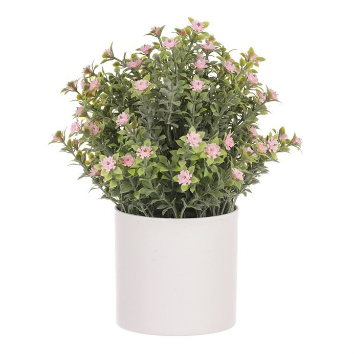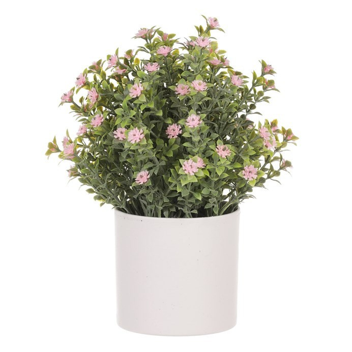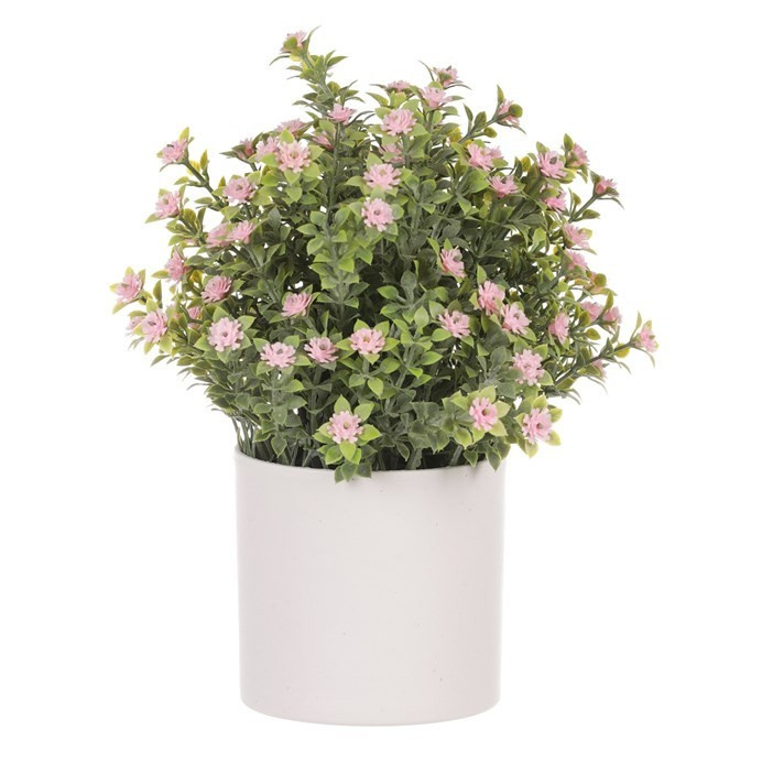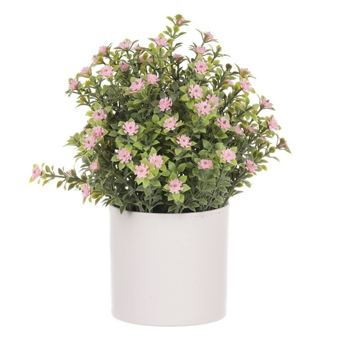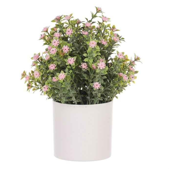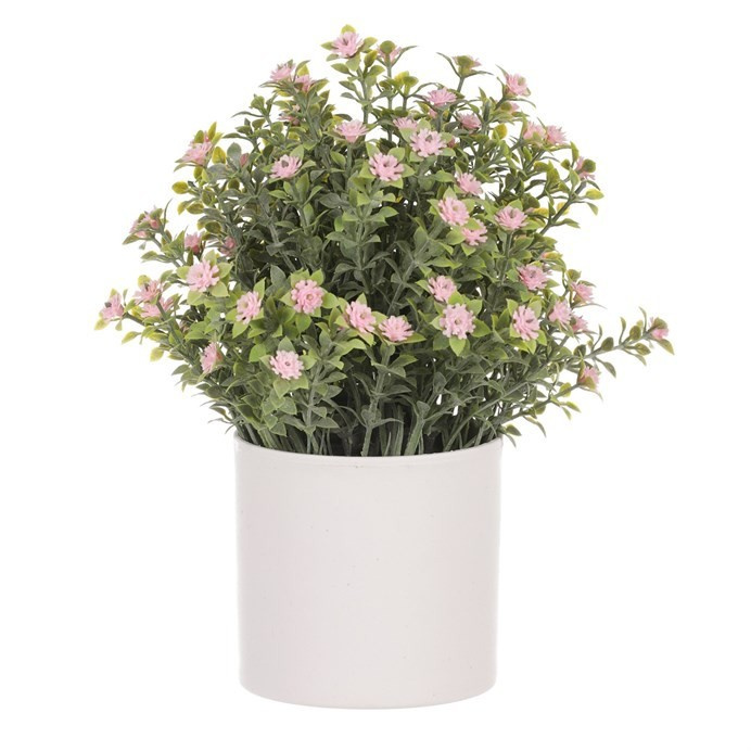 Tráva kvetoucí v bílém obalu - umělá, růžové květy