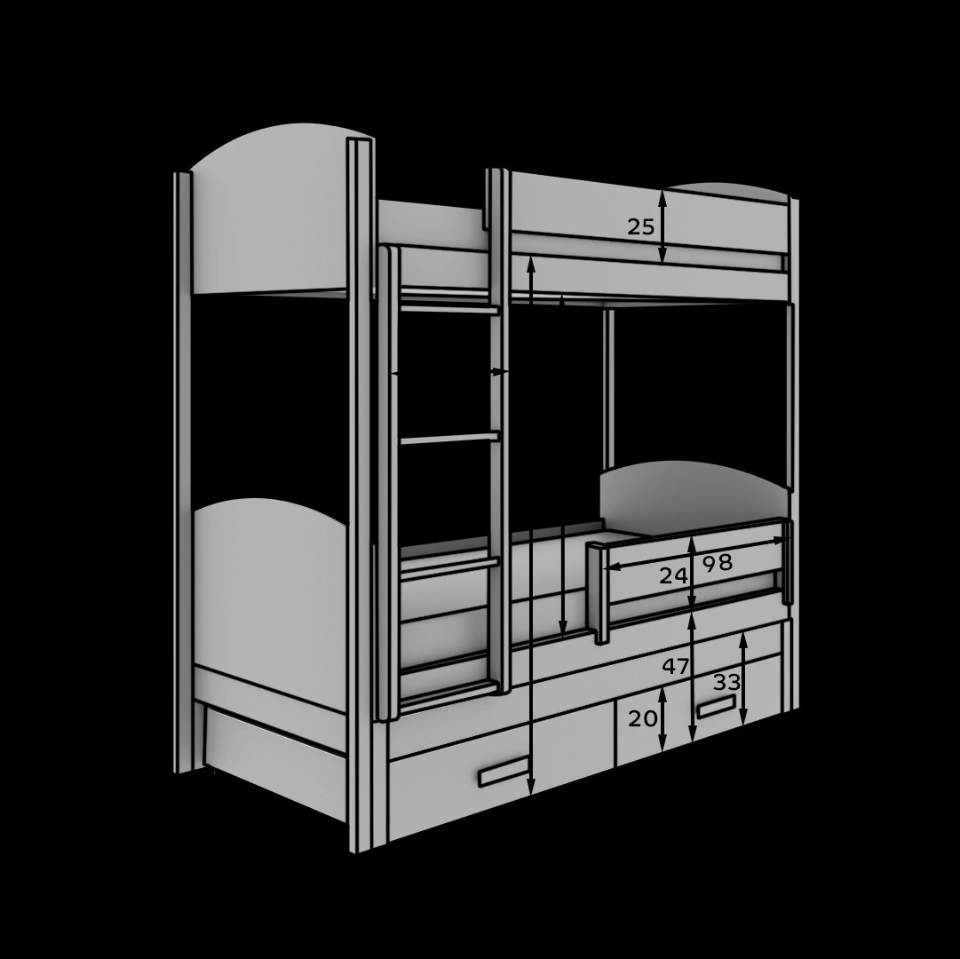 Dětská postel Leia je funkční řešení, které pojme tři děti. Jeho konstrukce se skládá ze dvou pater a dodatečné vysouvací spodní postele. Solidní rám zajišťuje stabilitu a bezpečnost, a vestavěný žebřík umožňuje snadný přístup na horní úroveň. Ochranné zábrany na horní posteli zajišťují bezpečnost dítěte během spánku. Dodatečně je postel vybavena prostornými zásuvkami, které poskytují praktické místo pro uložení ložního prádla, hraček nebo jiných dětských doplňků. Leia je kombinací funkčnosti a moderního designu, ideální do dětského pokoje.