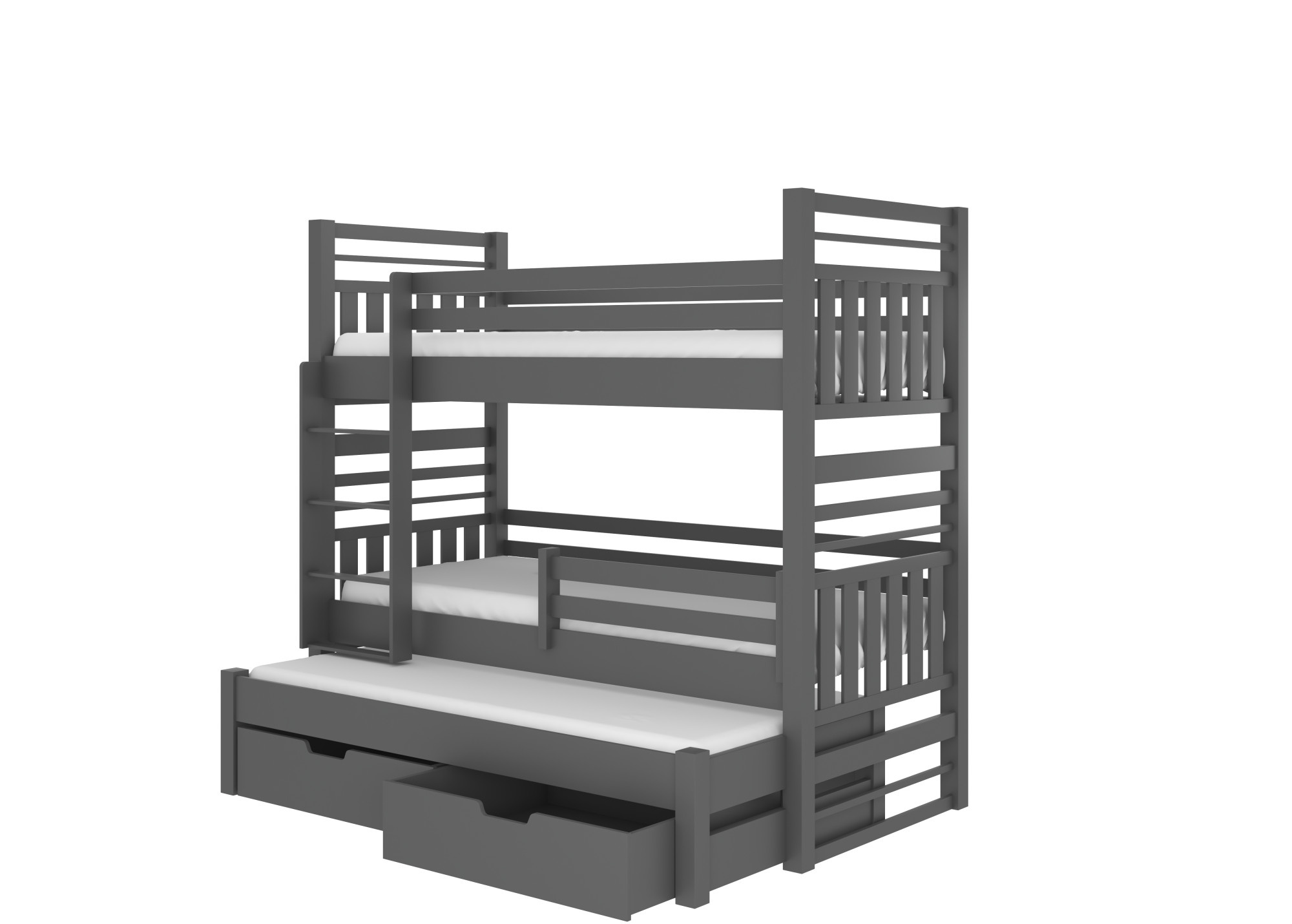 Třílůžková patrová postel s matracemi HIPPO 180x80 Šedá