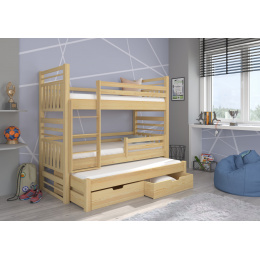 Třílůžková patrová postel s matracemi HIPPO 200x90 Pine Natural