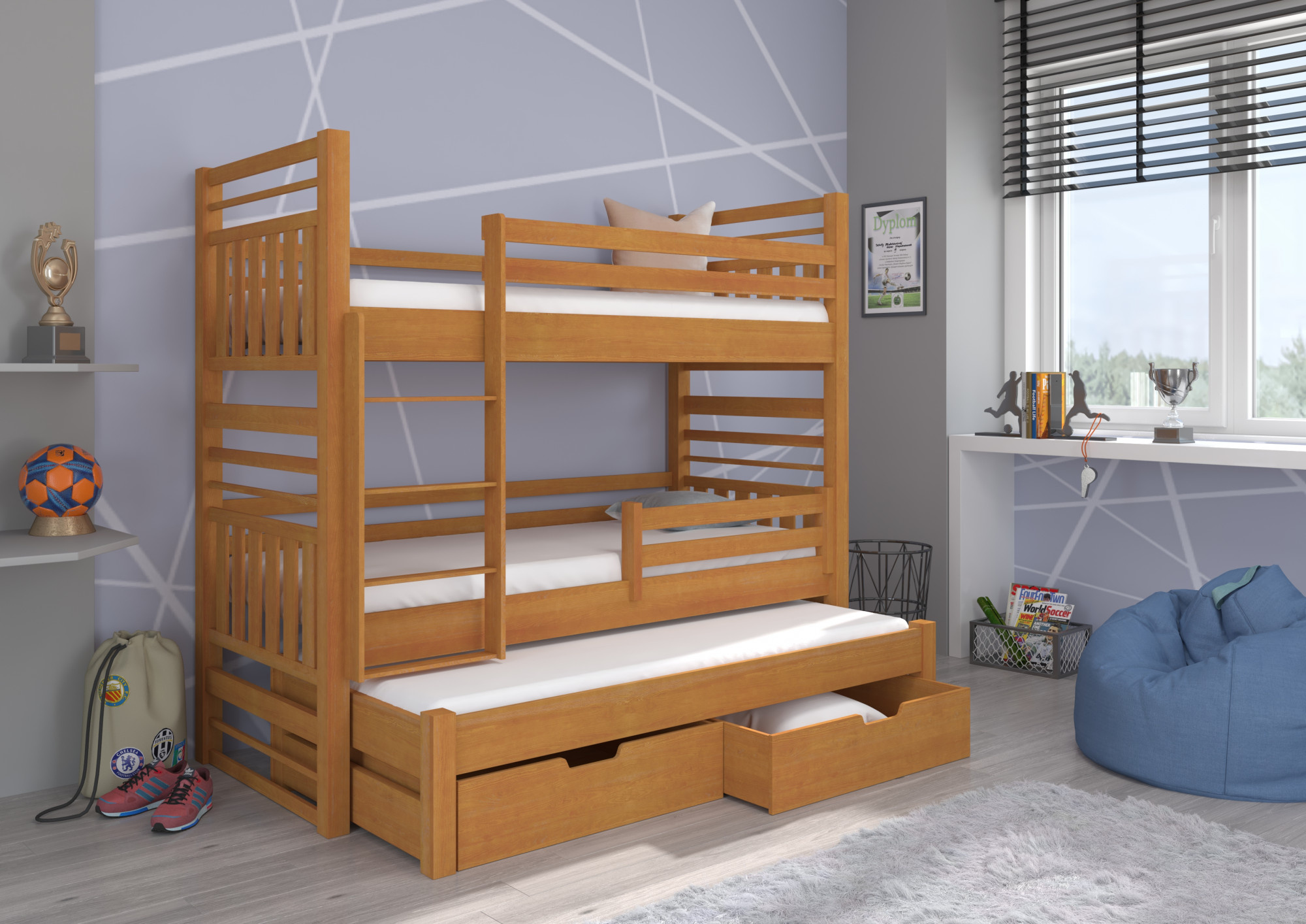 Třílůžková patrová postel s matracemi HIPPO 200x90 Olše