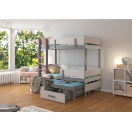 Třílůžková patrová postel s matracemi ETAPO 180x80 Šedá+Šedá