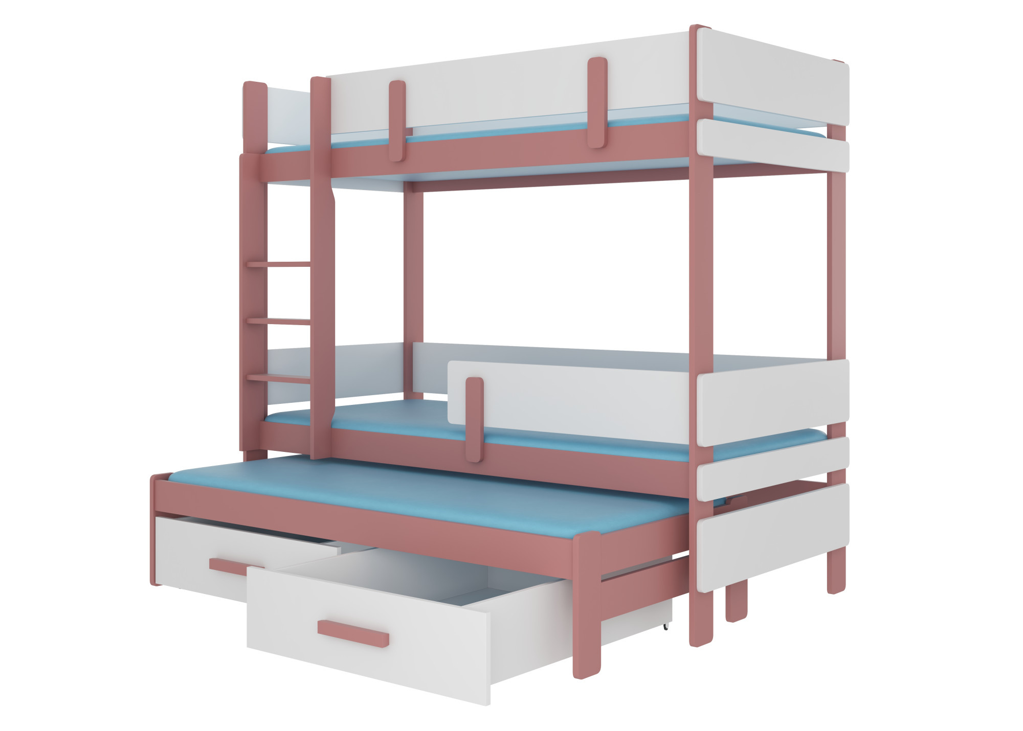 Třílůžková patrová postel s matracemi ETAPO 200x90 Růžová+Bílá