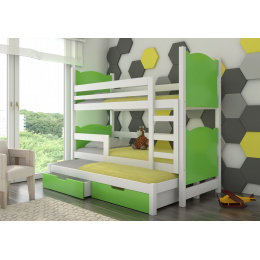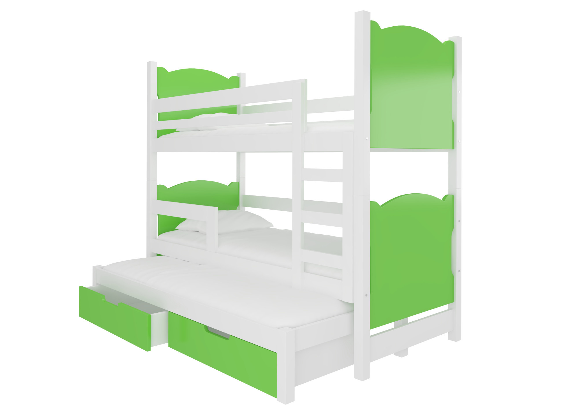 Třílůžková patrová postel s matracemi LETICIA White+Green