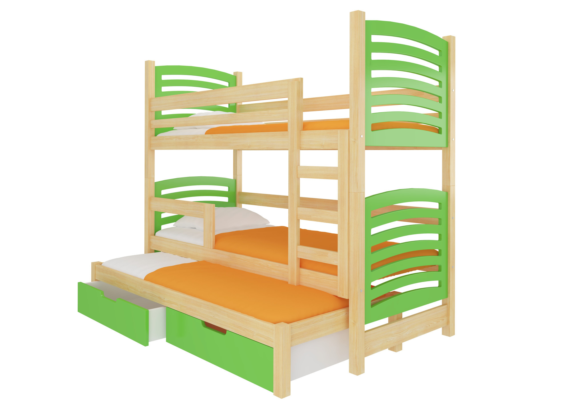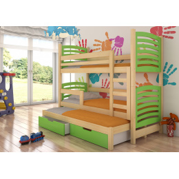 Třílůžková patrová postel s matracemi SORIA Pine+Green